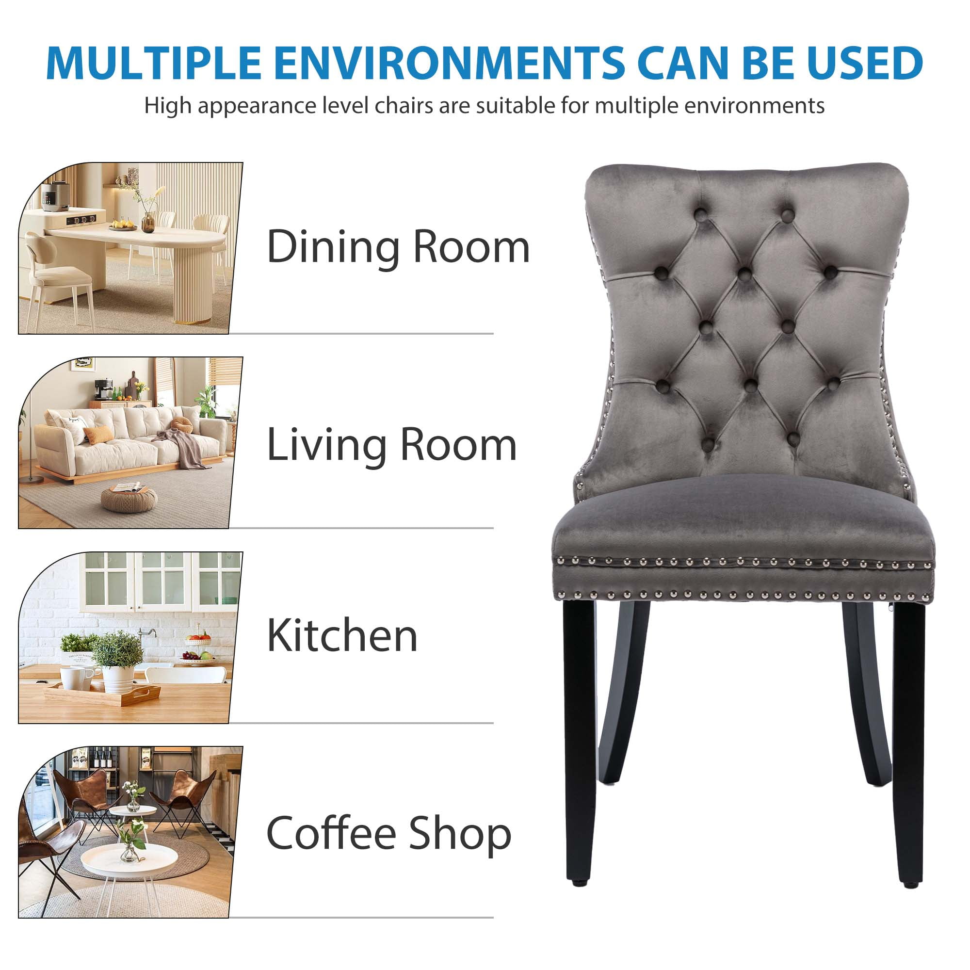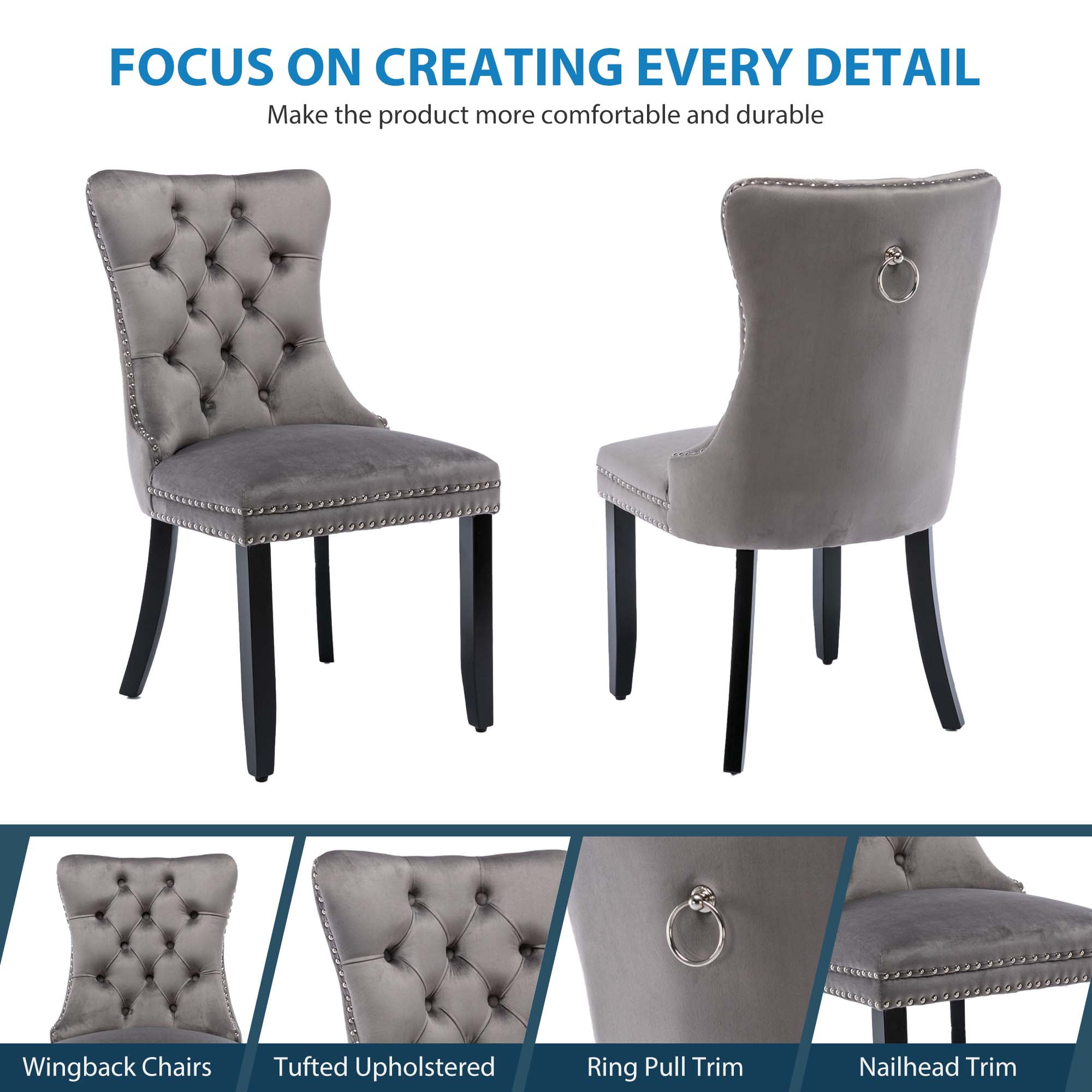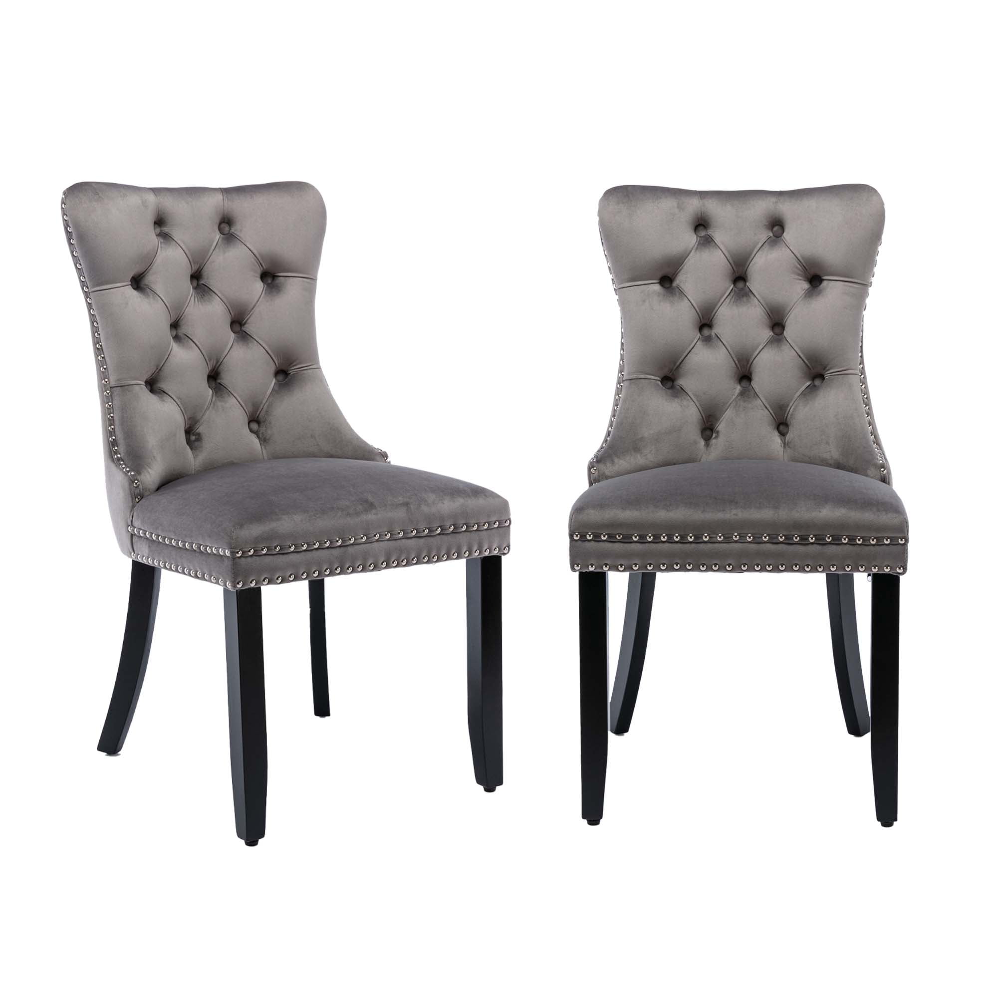 Aukfa High-End Upholstered Dining Chairs Set of 2, Modern Tufted Solid Wood Side Chair with Nailhead Trim – Gray