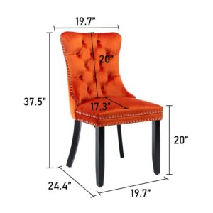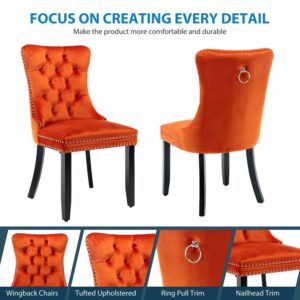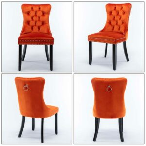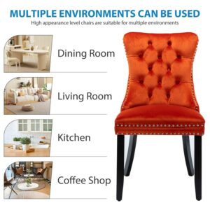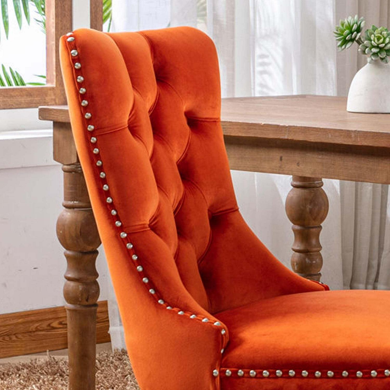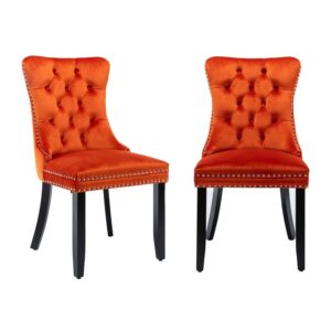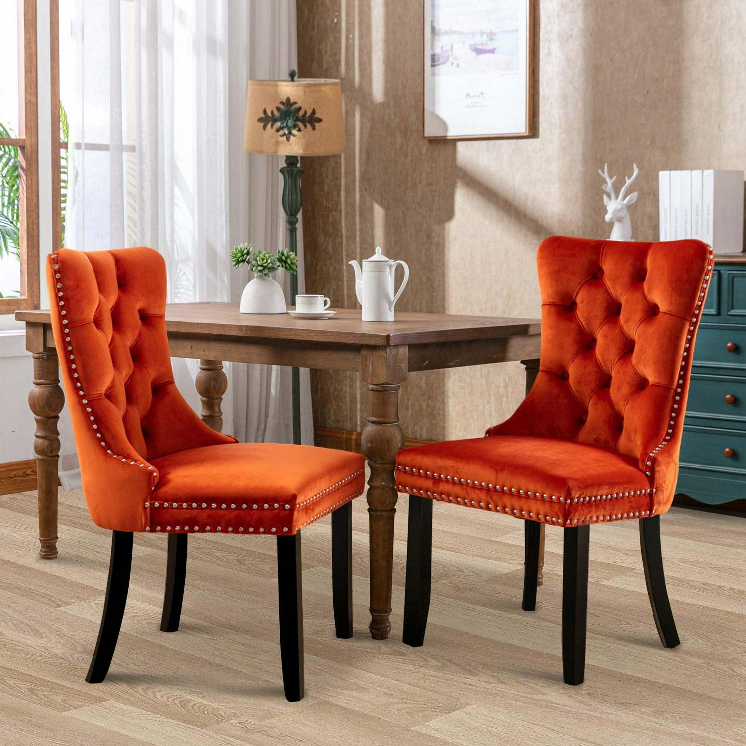 Aukfa High-End Upholstered Dining Chairs Set of 2, Modern Tufted Solid Wood Side Chair with Nailhead Trim – Orange