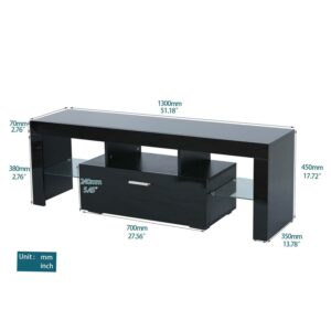 – LARGE CAPACITY DRAWER STORAGE -The TV stand has a space-saving design with a central drawer and open glass shelves for large storage capacity, and strong load-bearing capacity. Plenty of storage space for your gaming consoles, you can easily and neatly organize wires or you can put many things in the tv entertainment center, such as tv sets, projectors, vases, photo frames, etc.