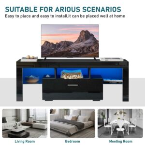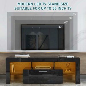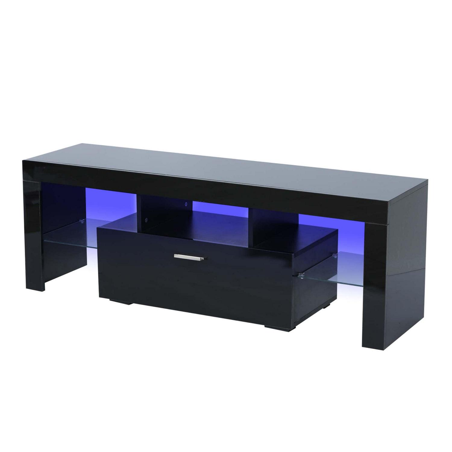 – FUSING DESIGN WITH FUNCTION -Featuring a modern and simple design, this TV Stand with Led fits with different room theme, and the LED lights could create different atmosphere for your room.