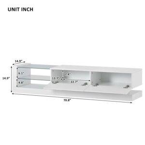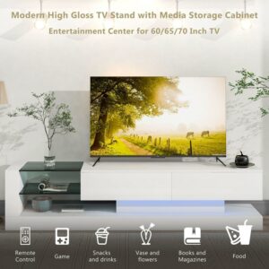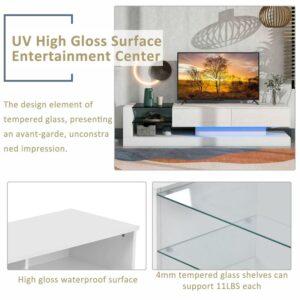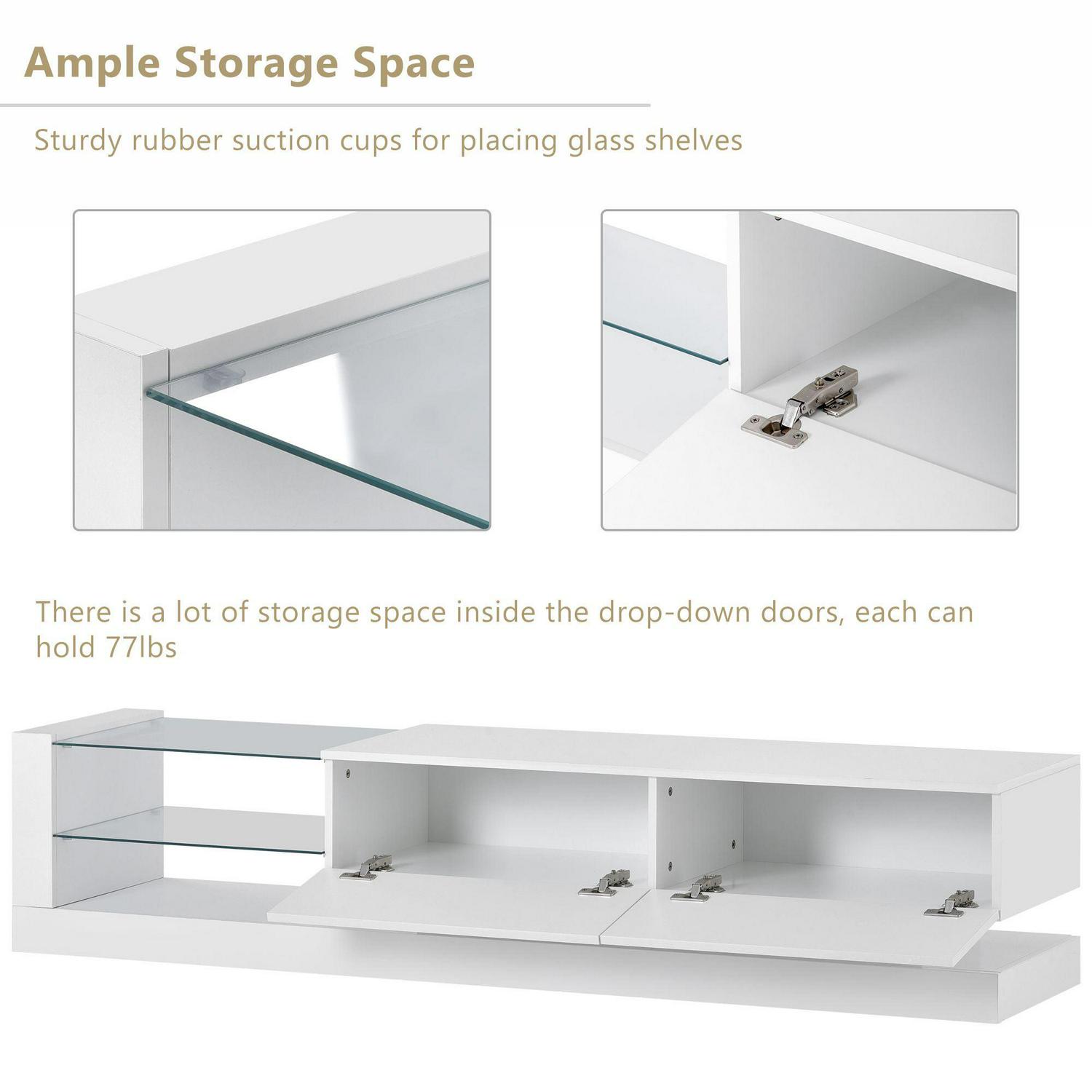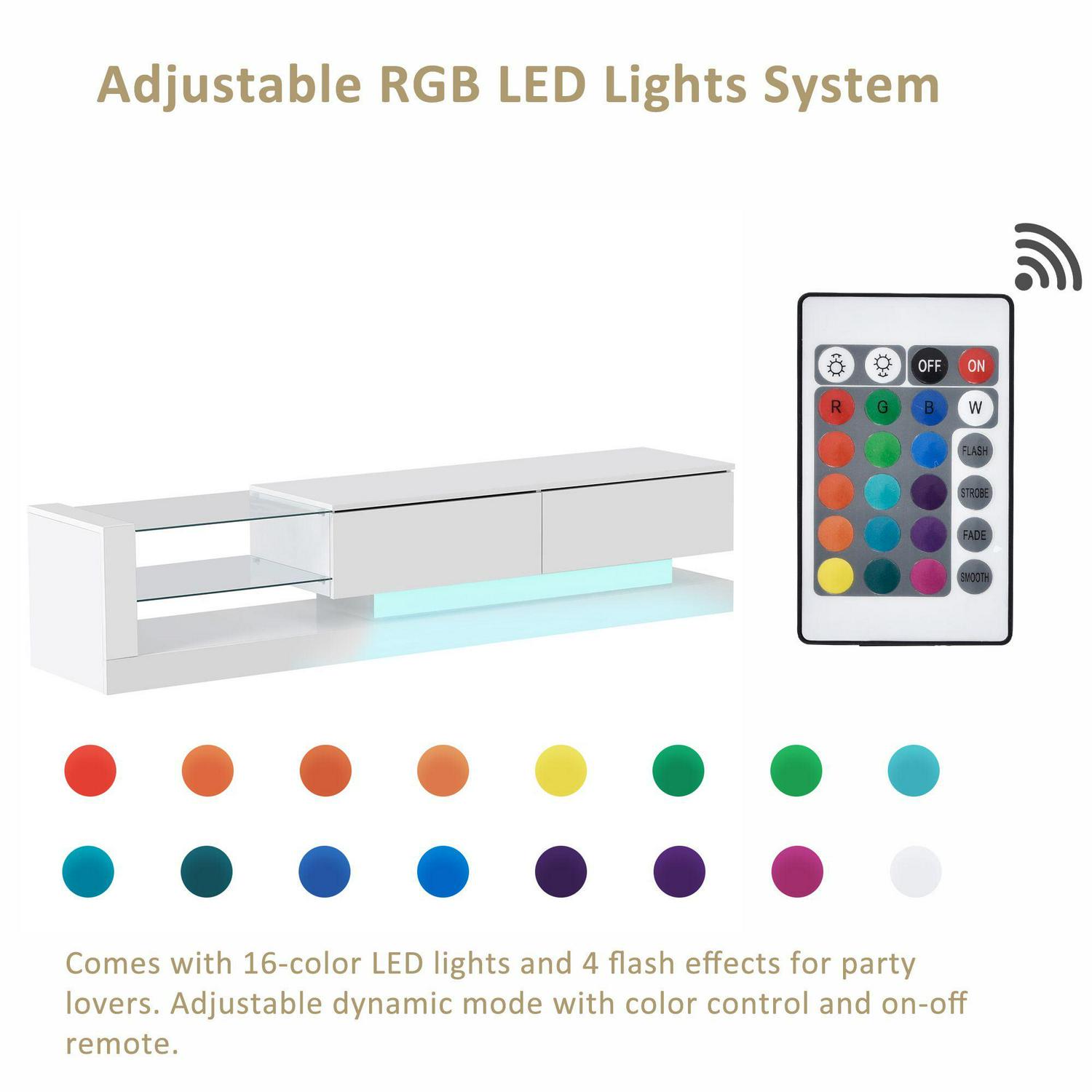 – MODERN CONCISE STYLE – In addition to the simple and smooth lines, this TV stand also adds the design elements of tempered glass, giving people an avant-garde and unrestrained feeling. Not only that, this TV stand also comes with 16-color light strips to add more freedom and interest to your room.