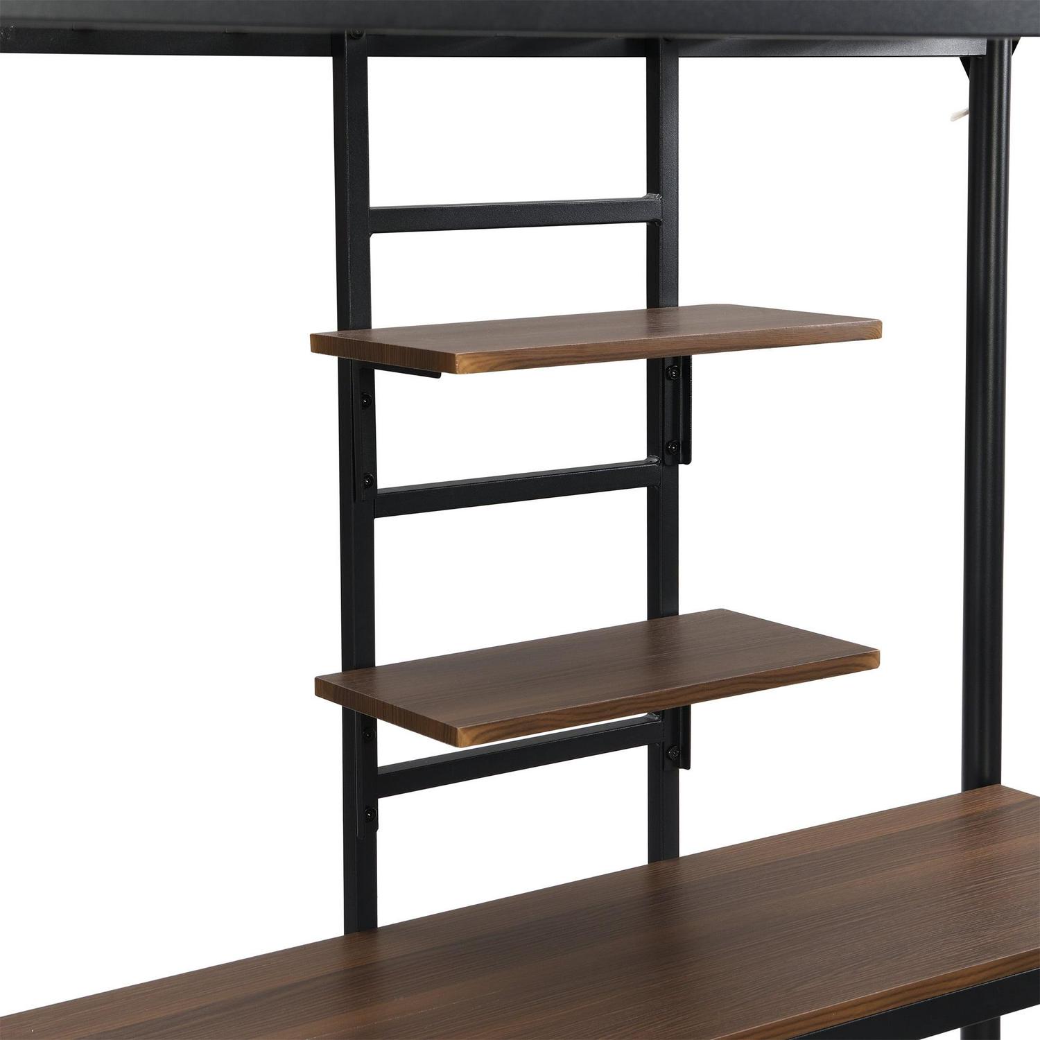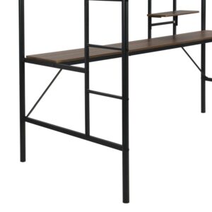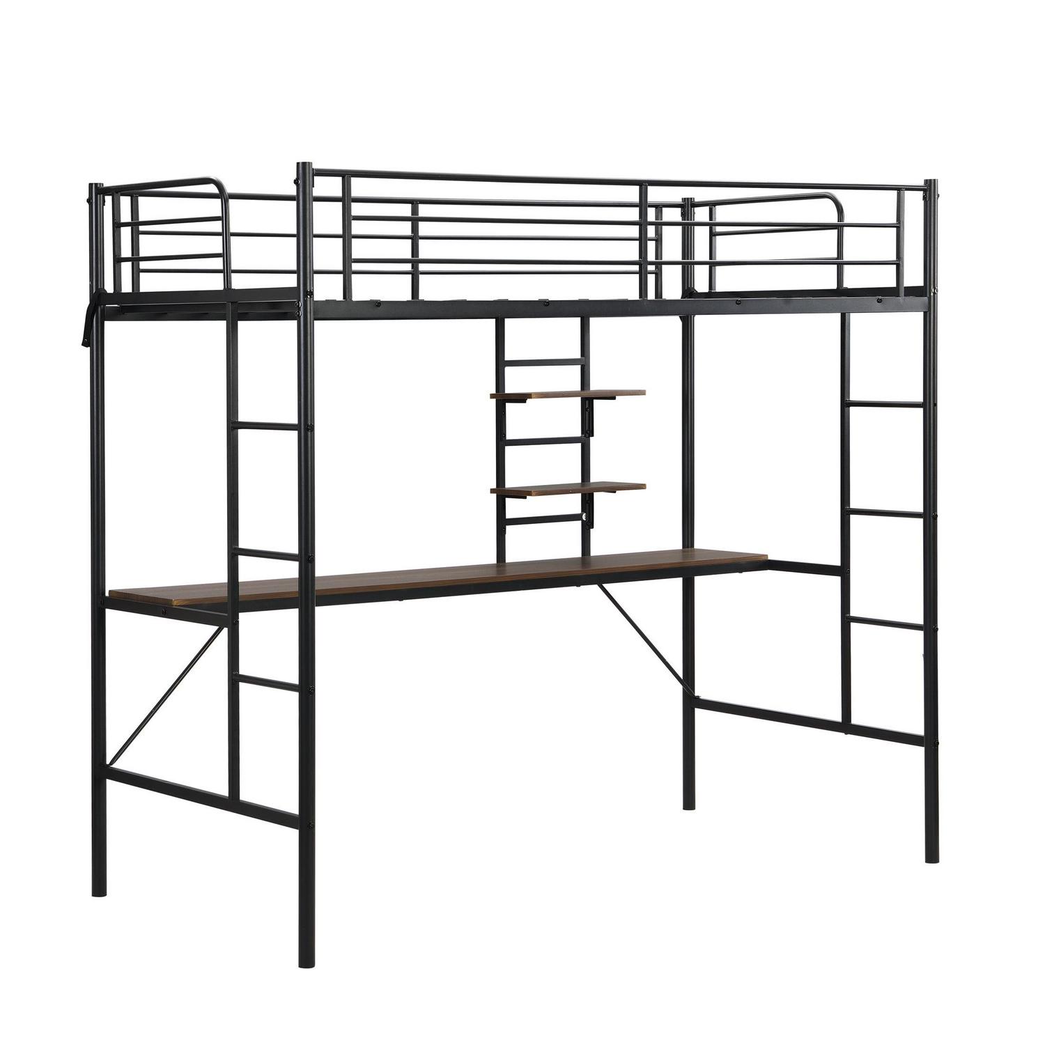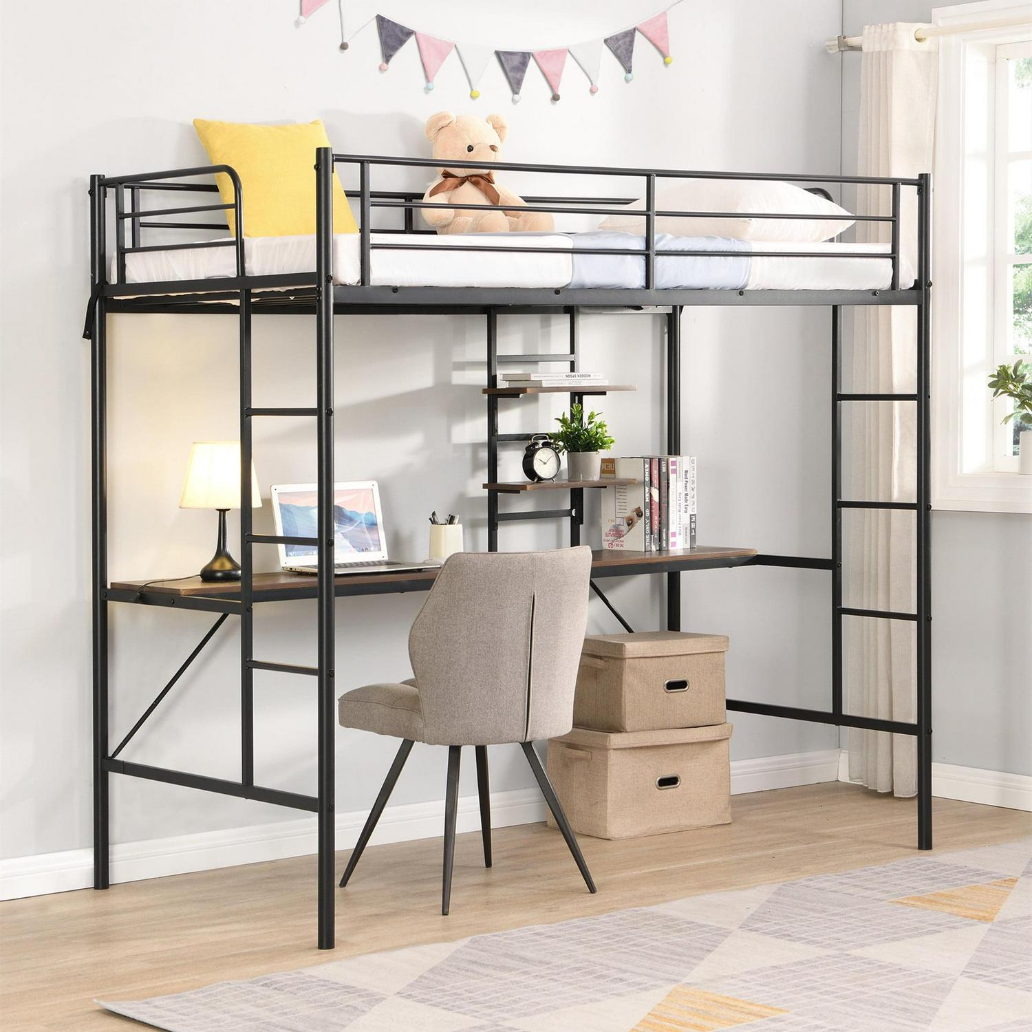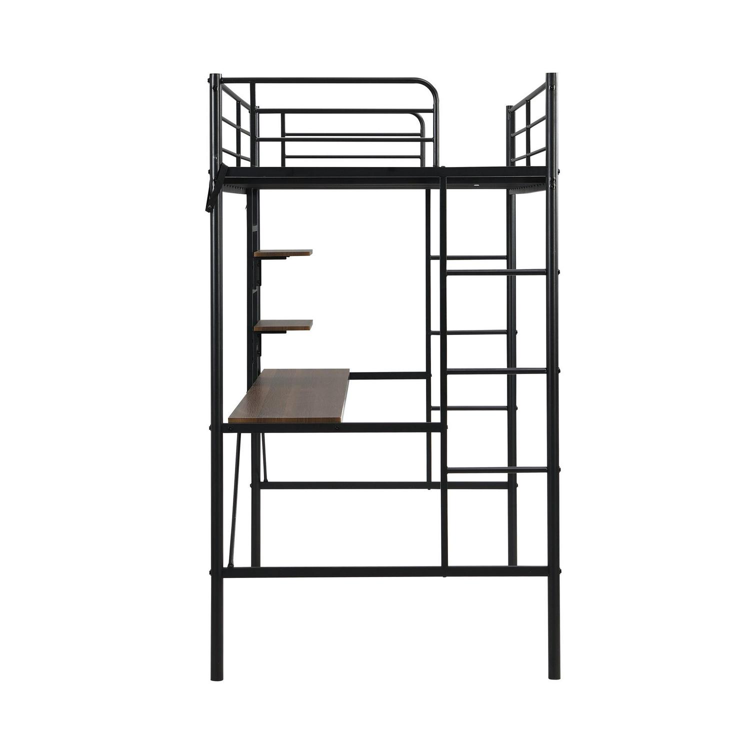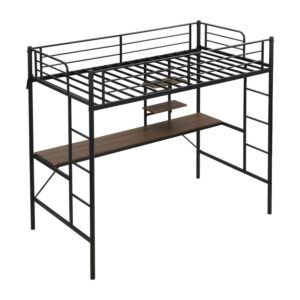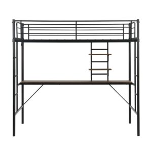 Aukfa Metal Twin Loft Bed with Desk and Storage Shelves for Kids Teens Bedroom Dorm, Black