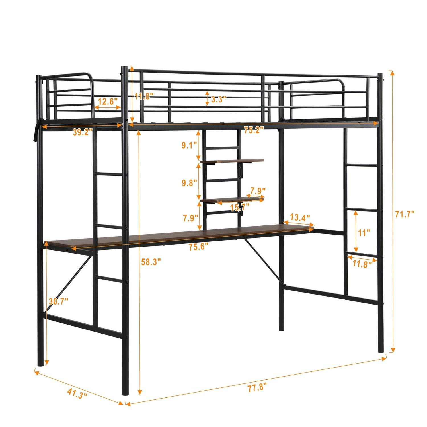 – SPACE-SAVING DESIGN – Maximize your room’s potential with our AK-FL01-006 metal twin loft bed featuring a built-in desk and storage shelves, ideal for small bedrooms or dormitories.