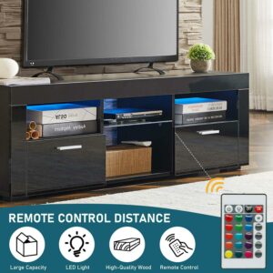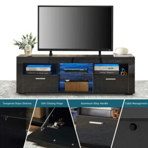 Aukfa Modern LED TV Stand for 55 inch TV, High Gloss TV Cabinet for Living Room – Black