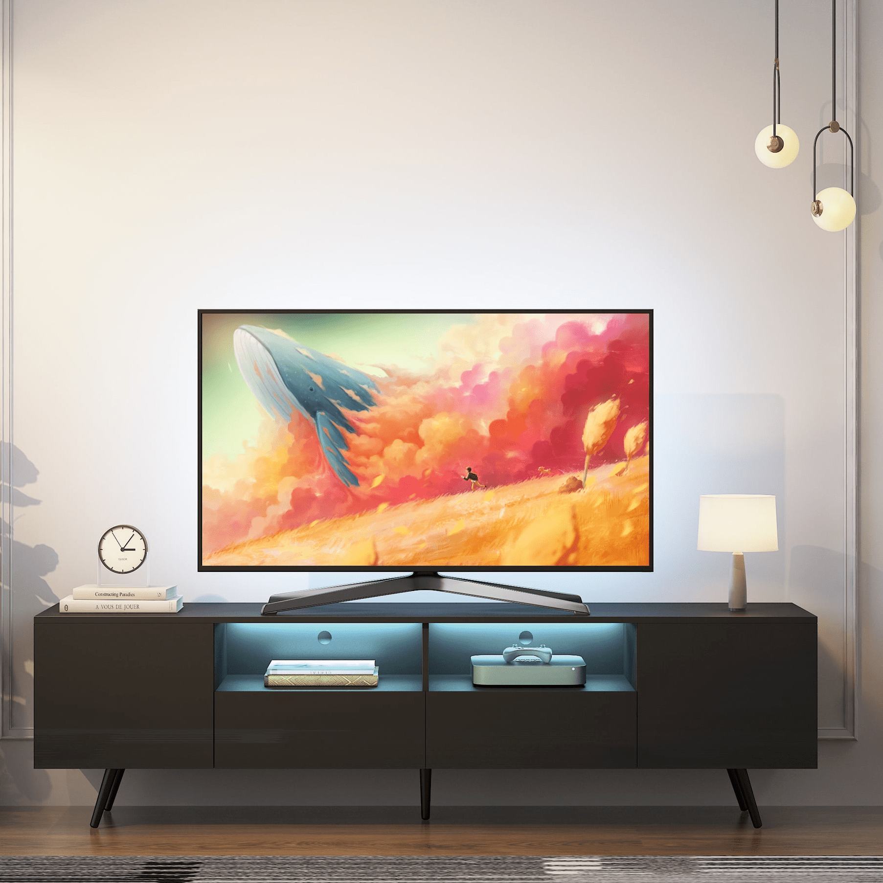 Aukfa Modern TV Stand for TVs Up to 75″, TV Console table with 16 Colors LED, Black