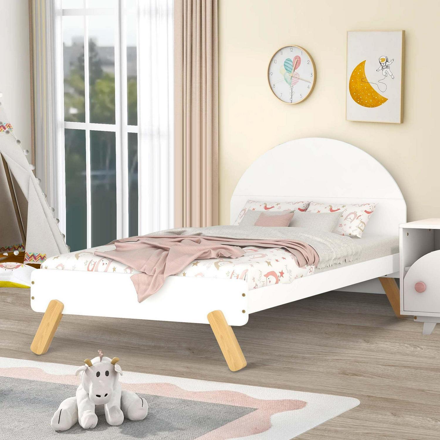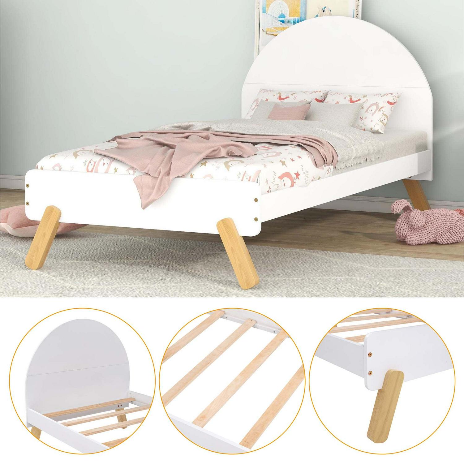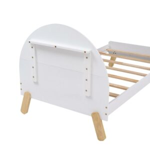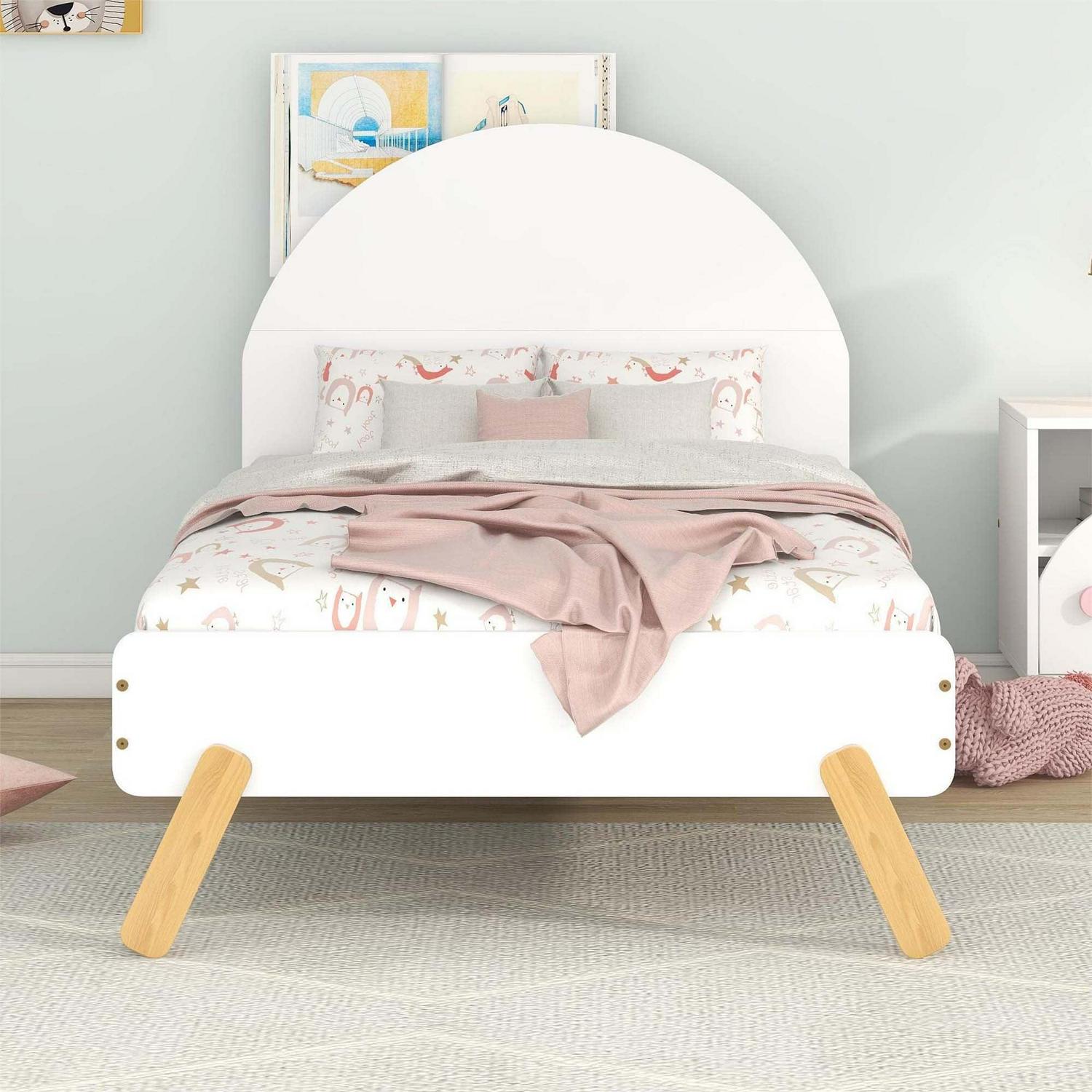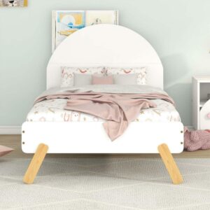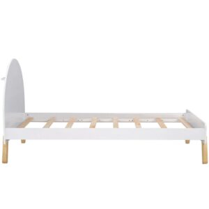 Aukfa Platform Bed for Kids, Twin Bed Frame with Semi-circular Headboard, Wooden – White