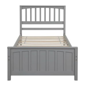 Aukfa Platform Bed, Twin Bed Frame with Headboard, Wooden – Gray