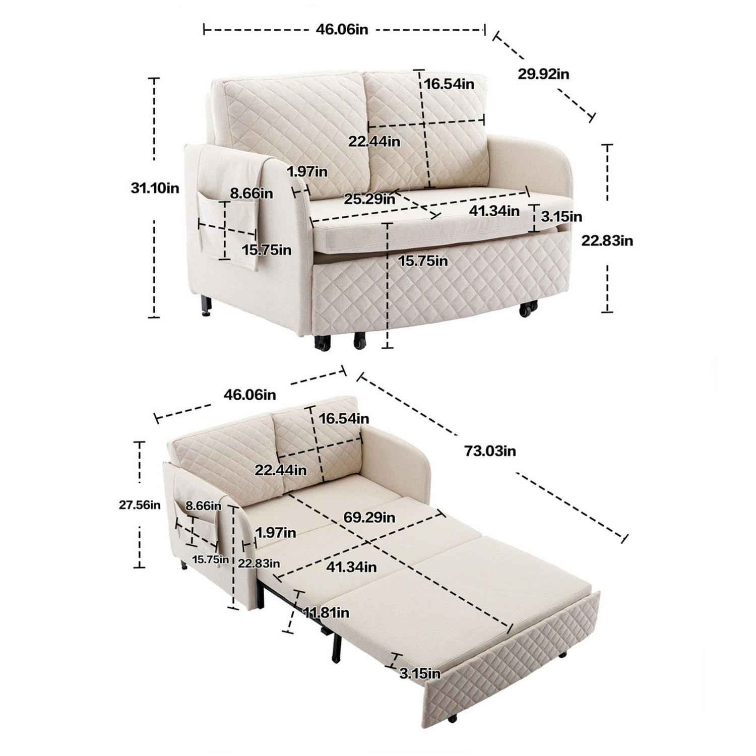 – Overall – Sleeper Sofa: 73 L x 46 W