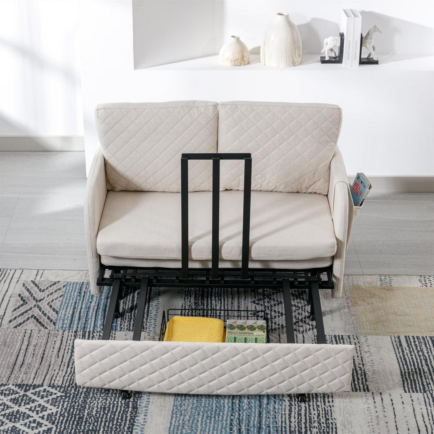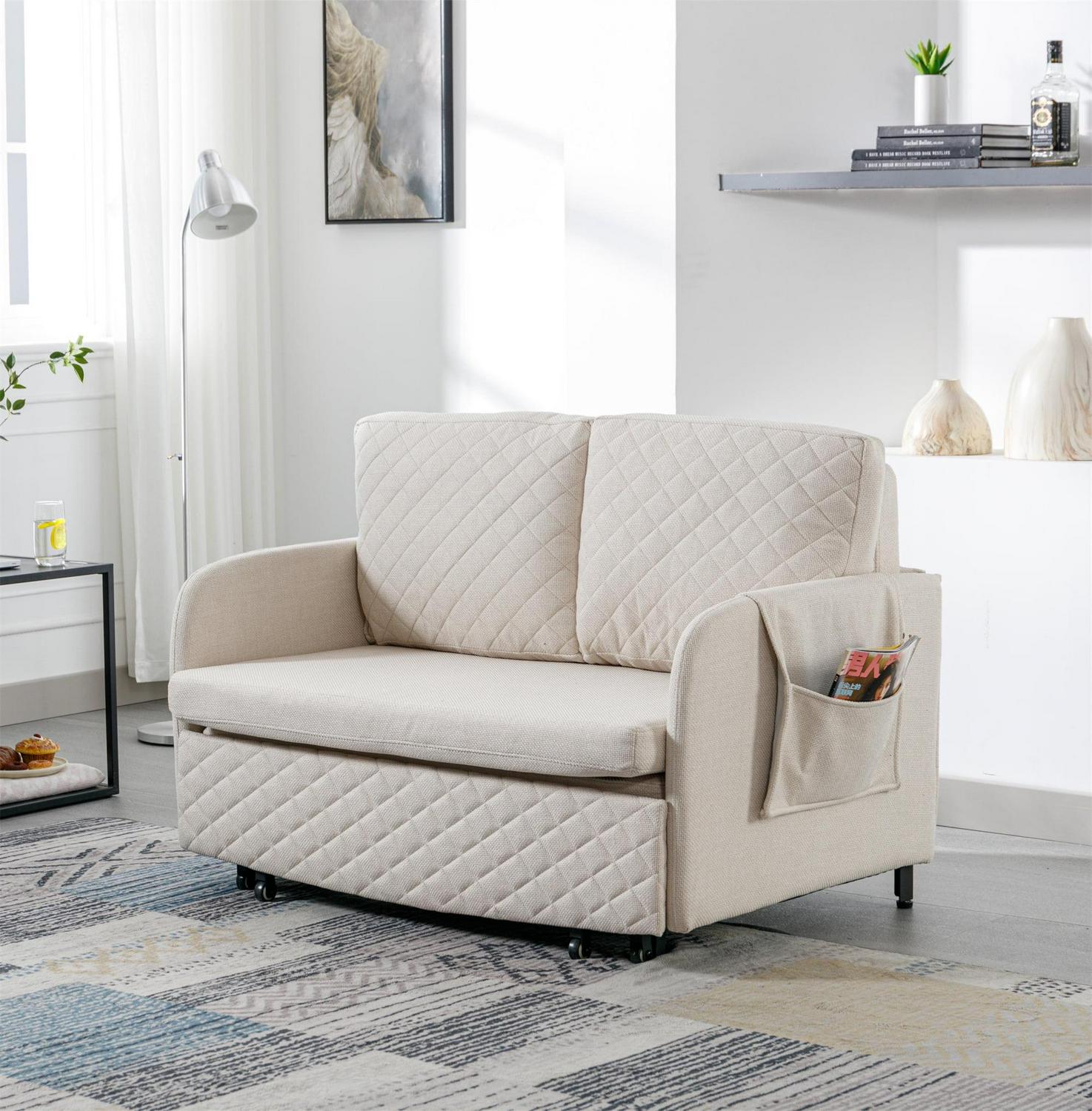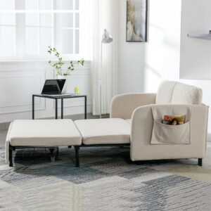 Aukfa Pull Out Sofa Bed, Convertible Sleeper Sofa Futon Sofa Bed for Home Office, Linen, Beige