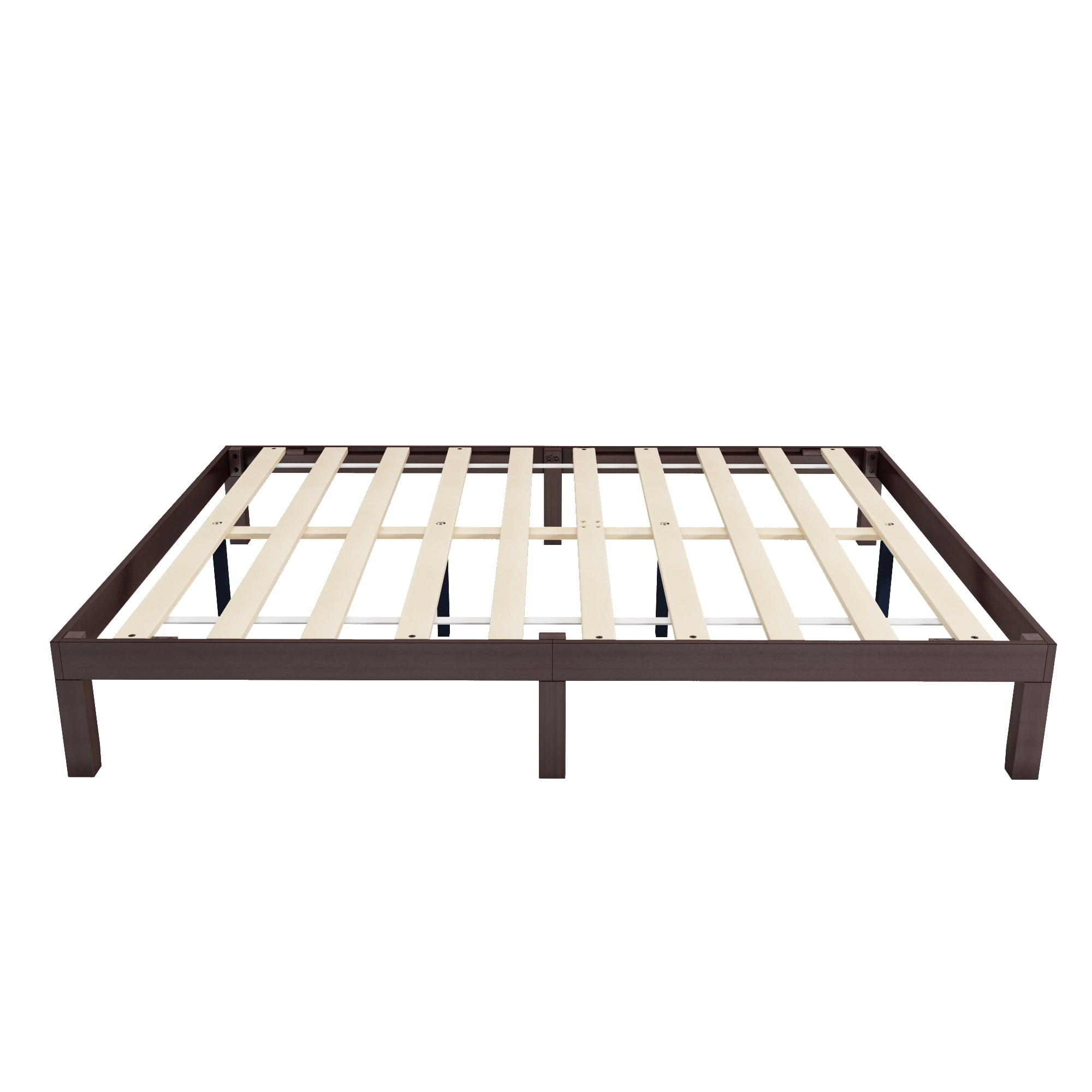 Aukfa Queen Bed Frame – Solid Wood Platform Bed – Coffee