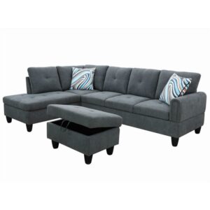 – SECTIONAL SOFA SET – Our AK-FS03-029 3-piece sectional sofa set with storage ottoman maximizes your living space by providing ample seating and a discreet storage solution, perfect for organizing blankets, pillows, and more. Experience unparalleled comfort and style with our sectional sofa set, designed to transform your living room into a cozy sanctuary.