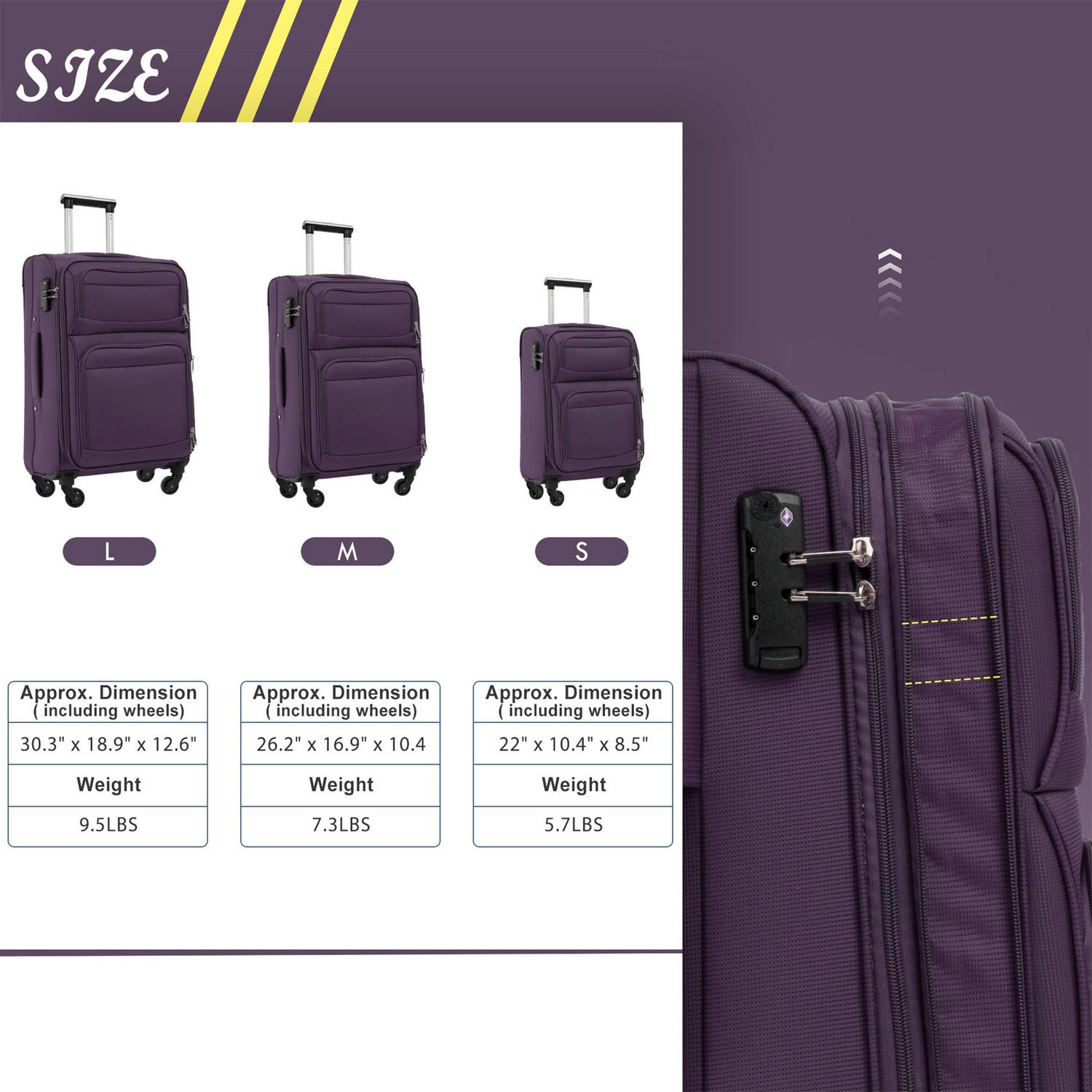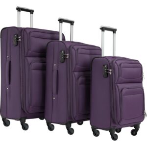 Aukfa Softside Expandable Luggage with Spinners, 3-Piece Suitcase Set for Travel (20/26/30), Purple