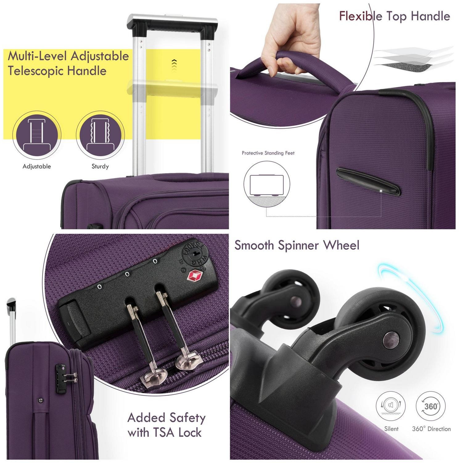 – STYLISH AND EYE-CATCHING DESIGN – Stand out from the crowd with our chic and contemporary softside suitcases set, available in a range of attractive colors, perfect for expressing your personal style while traveling.