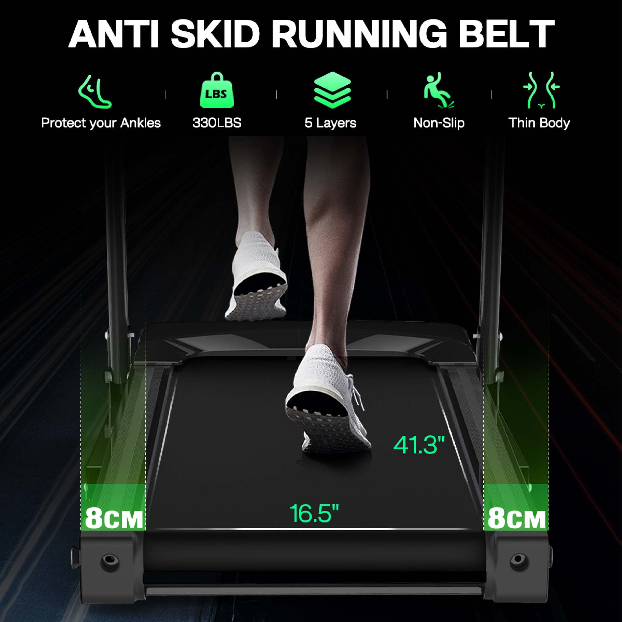 QUIET TREADMILL FOR HOME GYM WORKOUT – Use Aukfa AK-SF02-009 3.5HP folding treadmill, Enjoy a quiet workout with a powerful 3.5 HP motor perfect for walking, jogging and running in the comfort of your own home, with speed ranging between 0.5-8.5 mph. 330 LBS Max Weight Capacity. FOLDING TREADMILL WITH INCLINE – Take your fitness journey to new heights with our 3.5HP treadmill with incline. Embrace the power, convenience, and versatility this treadmill offers and achieve your fitness goals in the comfort of your own home. Invest in your health and wellness today with our top-of-the-line treadmill. 3 Manual incline options are available. FITNESS TRACKING LCD DISPLAY TREADMILL – Keeping track of your progress is essential for reaching your fitness goals. Our treadmill features a user-friendly LCD display that shows key workout metrics such as time, distance, speed, incline, and calories burned. Stay motivated and challenged by monitoring your achievements and pushing yourself to new limits. FOLDING TREADMILL WITH QUALITY-WIDE BELT DECK – We understand the importance of comfort during exercise, which is why our treadmill is equipped with a 16.5″ spacious running surface. With ample room to stride comfortably, you can maintain a natural gait and reduce the risk of injury. The cushioned deck absorbs impact, providing joint-friendly support, and reducing stress on your knees and joints. BLUETOOTH & ENJOY – Open Bluetooth, match the cardio machine, then enjoy music. The built-in speaker brings more fun to your fitness experience. Doing exercise at home is no longer a boring thing when running on this machine. POWERFUL VACUUM MOTOR AND SAFETY EMERGENCY STOP KEY – Premium vacuum motor reduces noise while you run indoors while the safeguard emergency stop key keeps you in control at all times, stopping the treadmill when pulled for your safety. SPACE SAVING – Free up precious floor space by folding your treadmill up and out of the way when it’s not in use with the easy folding feature and easily roll it using the built-in transport wheels. Fitted base rolling wheels on the treadmill underside provide easy and simple transport that protects your floors. EASY ASSEMBLY RUNNING MACHINE – The machine comes fully assembled, simply unfold it and tighten the screws – each treadmill comes with all required tools and instructions. SPECIFICATION: PRODUCT INFORMAITON Assembled Size: 50” L x 26.4” W x 46.5” H Folded Size: 46.2” H x 28.3” W Overall Product Weight: 79 lb Max. User Weight: 330 lb (Actual) Motor power: 3.5 HP Speed: 0.5-8.5 MPH Training Programs: 12 Running Area/ Tread Belt: 41.3” L x 16.5” W Power Supply: 110 V Package Dimension: 53.34″L x 29.13″W x 8.66″H; 91.5 lb Features Product Type: Motorized Treadmill Material Frame: Steel Panel; Plastic Bed Size: Twin Size Color: Black & Red Foldable: Yes Transportation Rollers: Yes Manual Incline: 3 Manual Incline Bookshelf: Yes Display: Time, Calorie, Speed, Distance and Step Package List: Treadmill, Belt Lubricant, Hardware Kit, User Manual Supplier Intended and Approved Use: Residential Use Assembly Level of Assembly: Partial assembly Adult Assembly Required: Yes Suggested Number of People for Assembly/Install: 1 Additional Tools Required (Not Included): All Tools Included Warranty Product Warranty: Yes Full or Limited Warranty: Limited Warranty Length: One Year