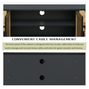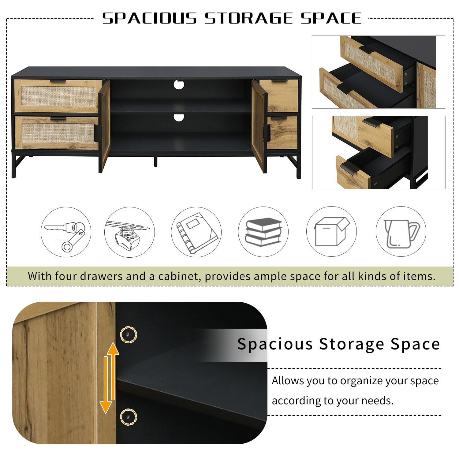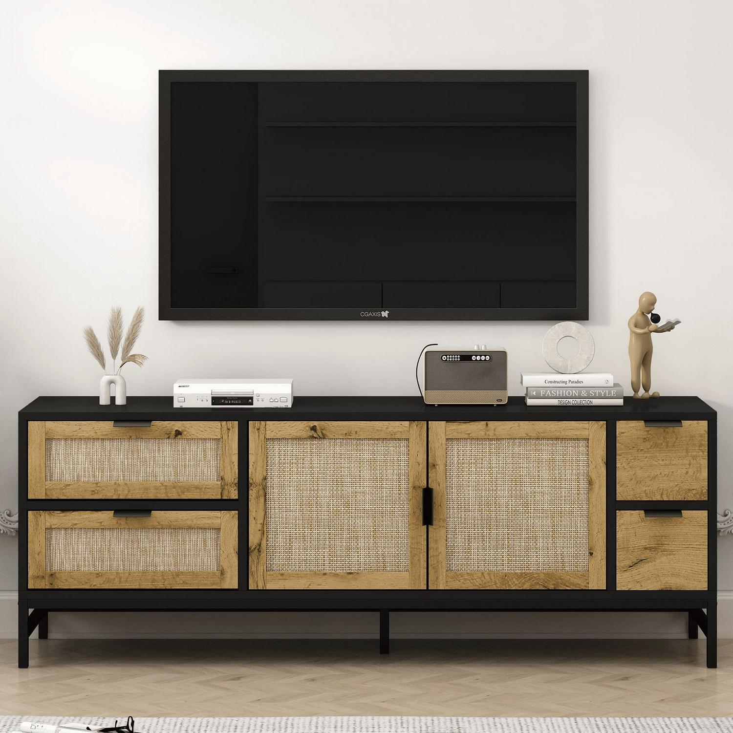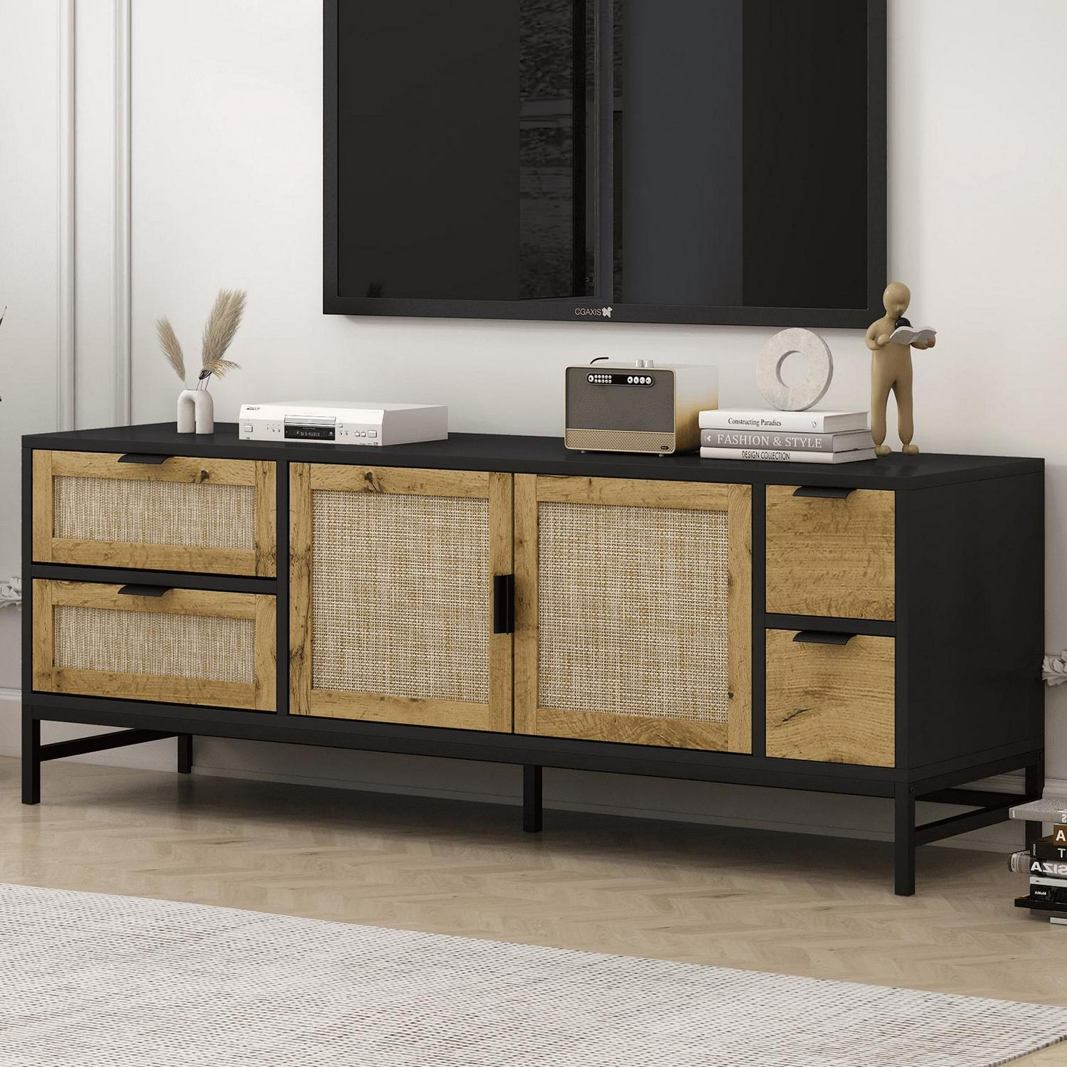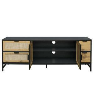Aukfa TV Stand for TVs up to 65 , Rattan Media Console with Adjustable Shelves for Living Room,Boho – Black