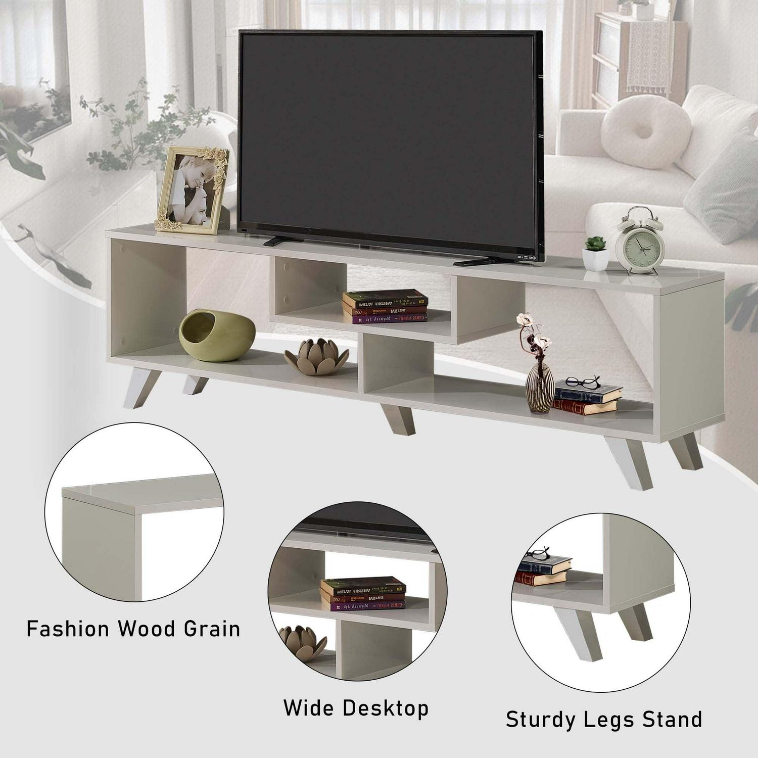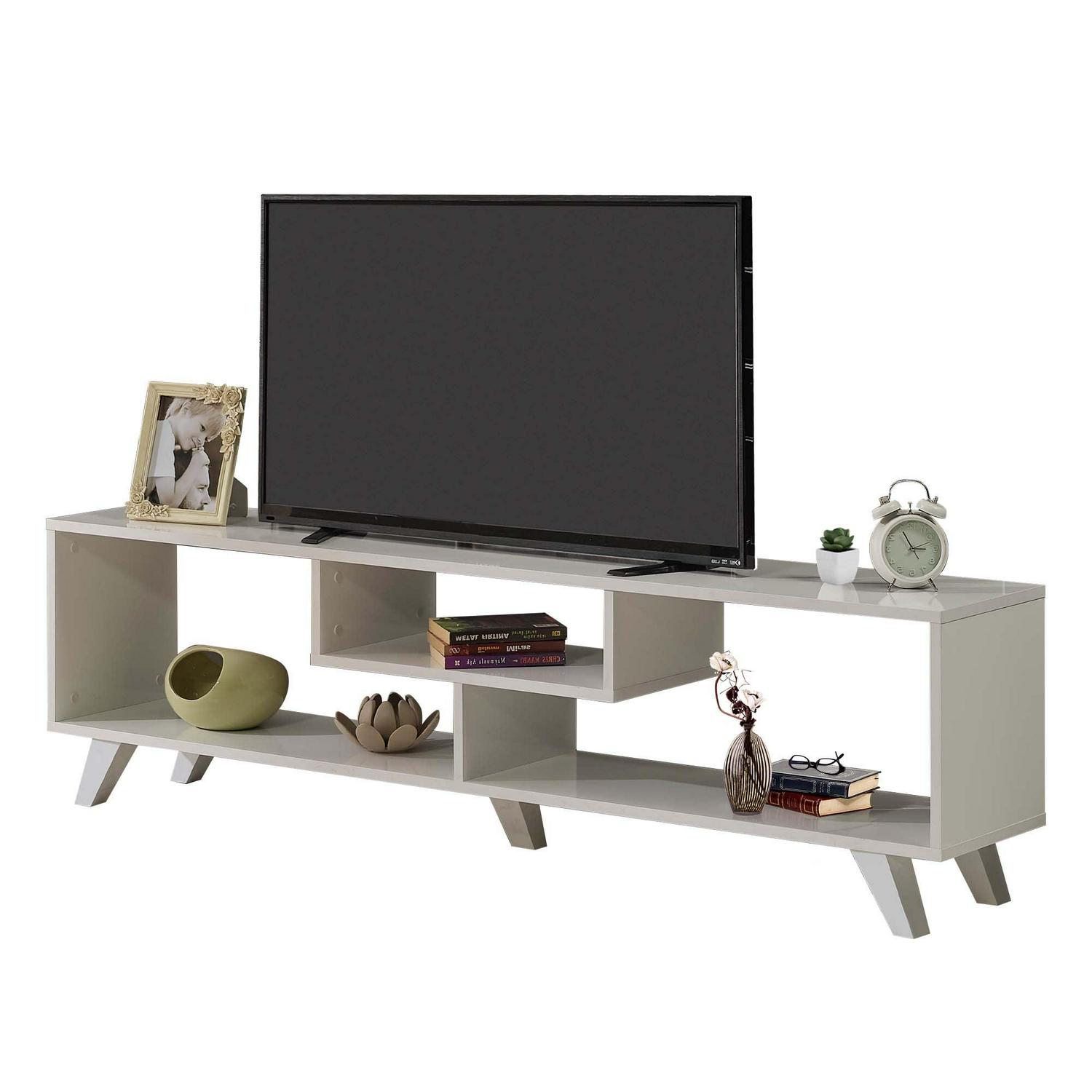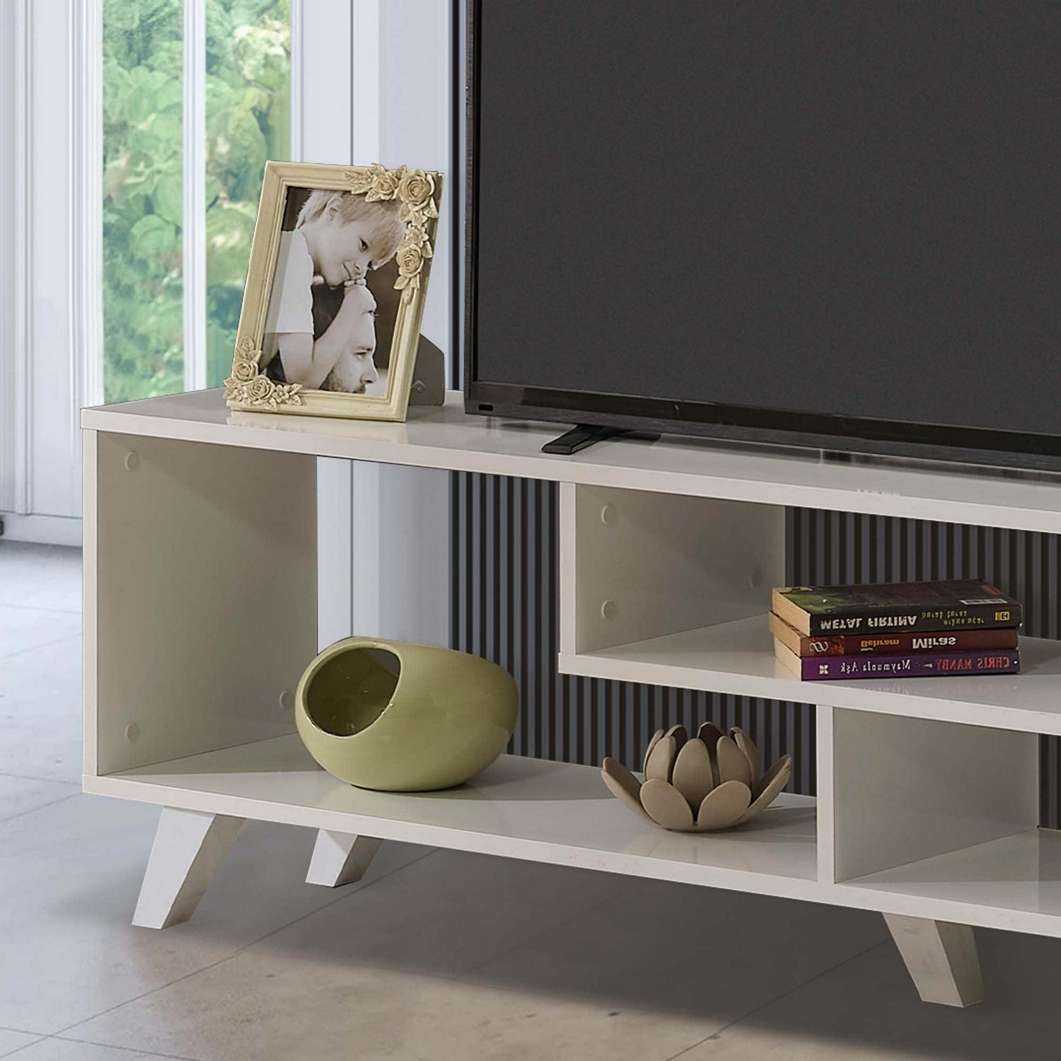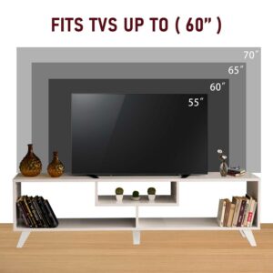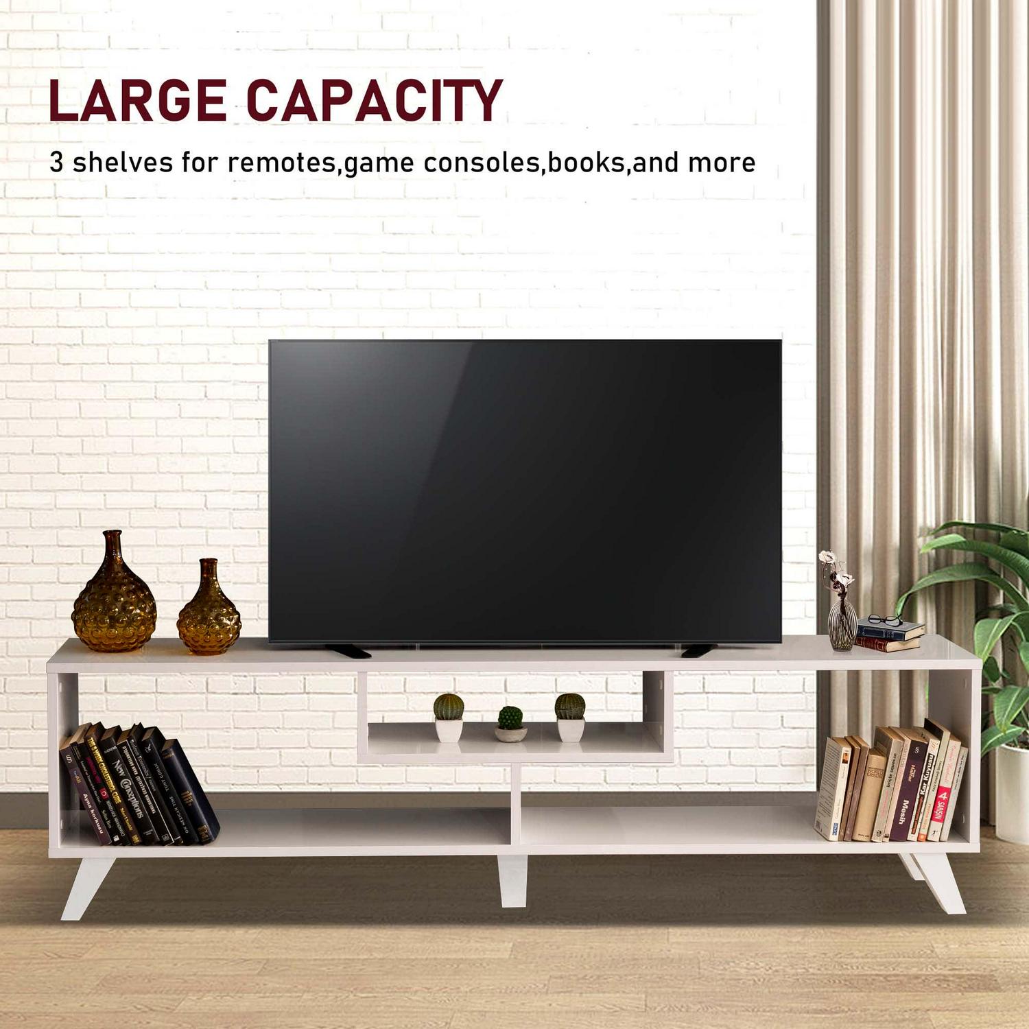 Aukfa TV Stand for TVs up to 70 – Open Shelving Entertainment Centre for Living Room – White