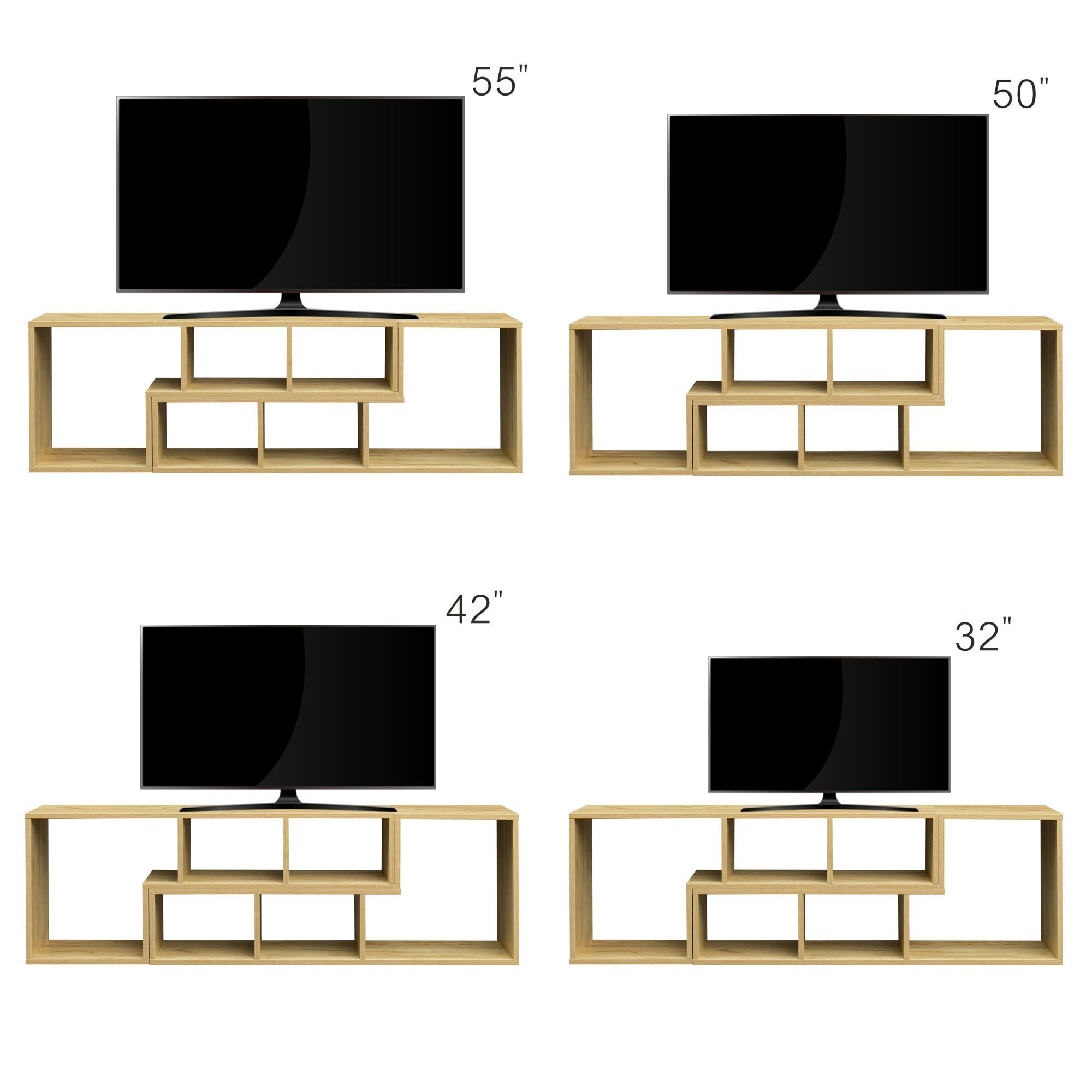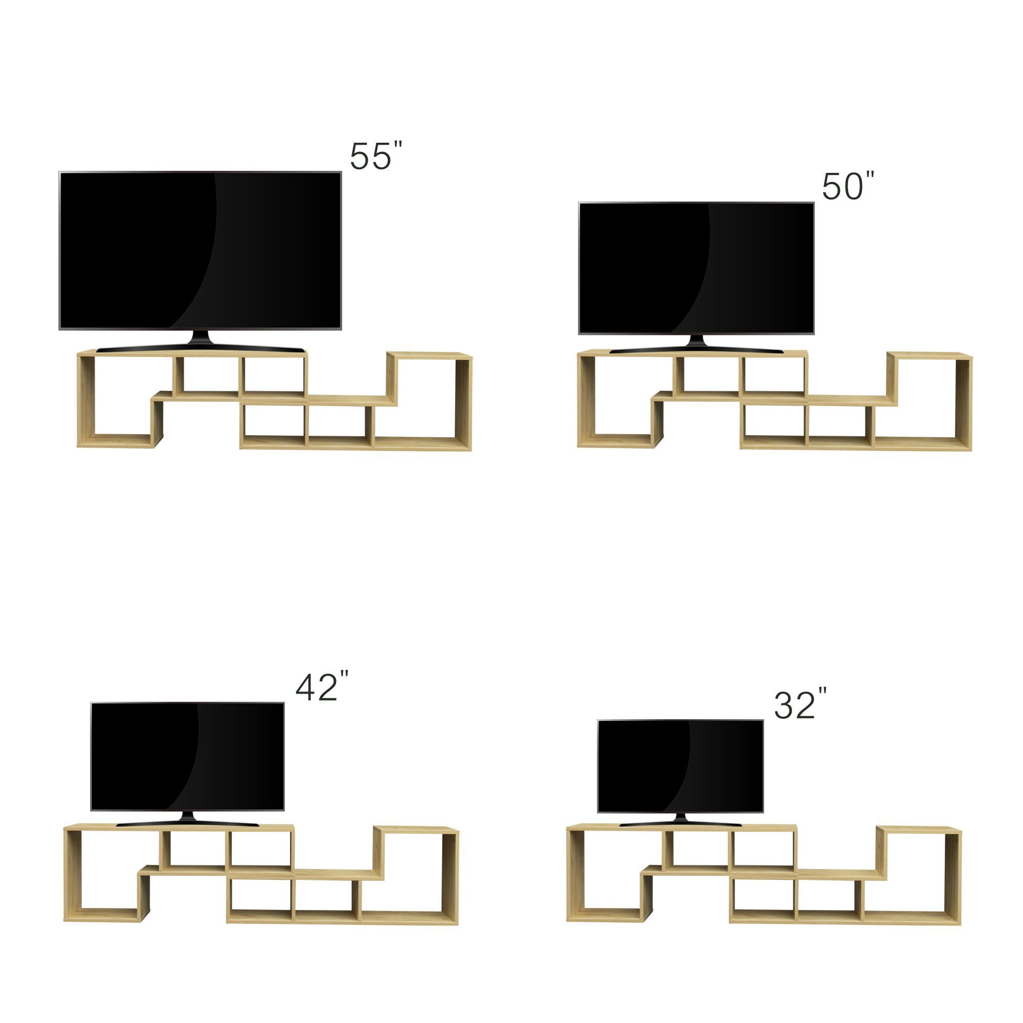 This double L-bracket can be placed anywhere in your home as a bookshelf, display stand, TV stand, and more. Get creative and choose the best configuration for this stylish and functional cabinet!This Aukfa AK-FT01-060 TV stand easily complements any style of room or furniture. It will add a touch of classiness and vitality to your bedroom, living room, media room, office. Featuring many storage spaces, this modern TV stand is perfect for holding TV components, gaming accessory, books, decos. The shelf can be adjustable,different space meet your different request. Cable Holes for hiding messy cables, keeping your stuff neatly organized.