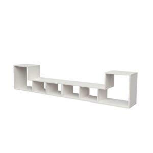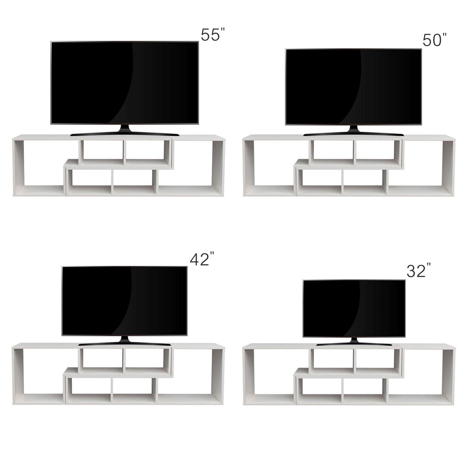 This double L-bracket can be placed anywhere in your home as a bookshelf, display stand, TV stand, and more. Get creative and choose the best configuration for this stylish and functional cabinet!This Aukfa AK-FT01-060 TV stand easily complements any style of room or furniture. It will add a touch of classiness and vitality to your bedroom, living room, media room, office. Featuring many storage spaces, this modern TV stand is perfect for holding TV components, gaming accessory, books, decos. The shelf can be adjustable,different space meet your different request. Cable Holes for hiding messy cables, keeping your stuff neatly organized.