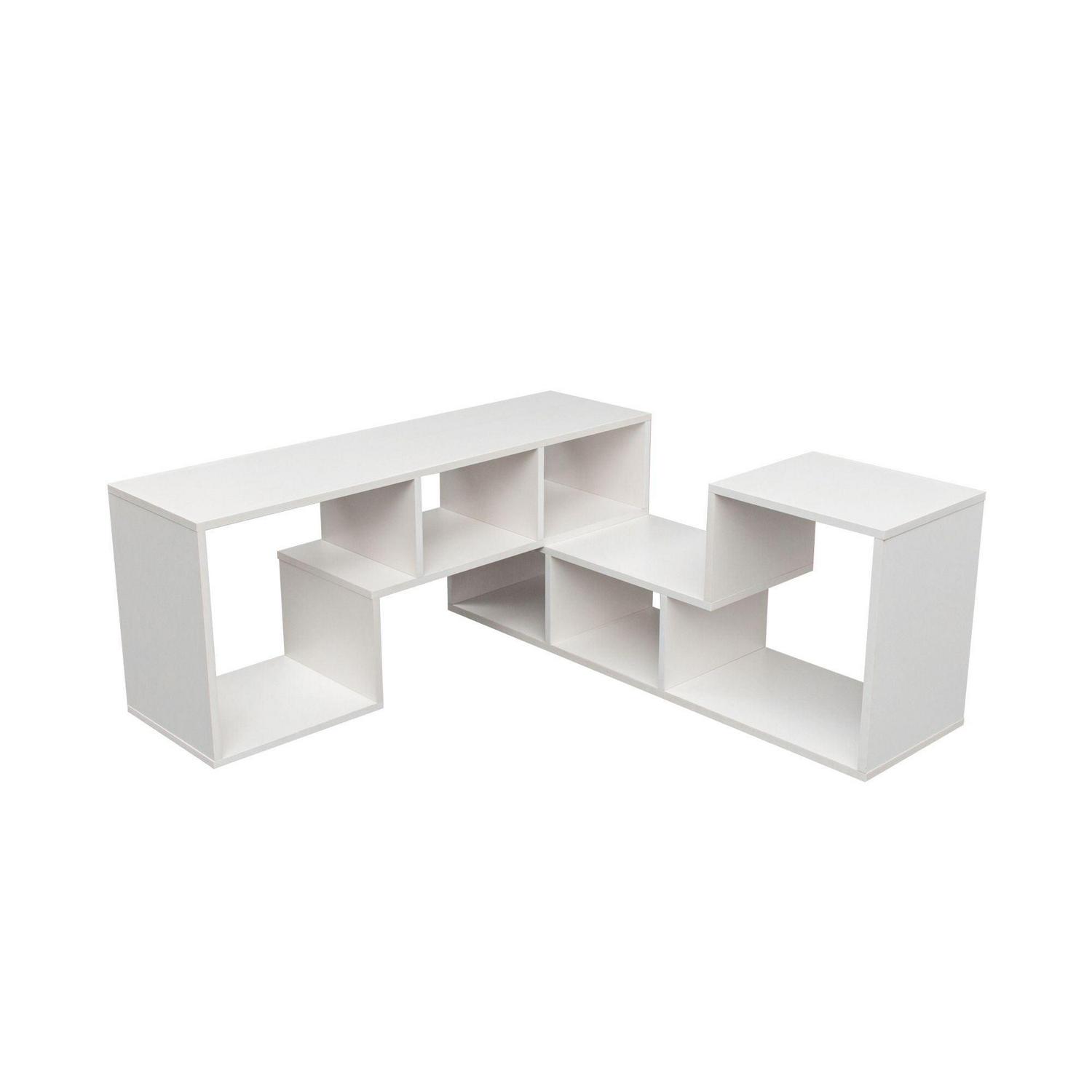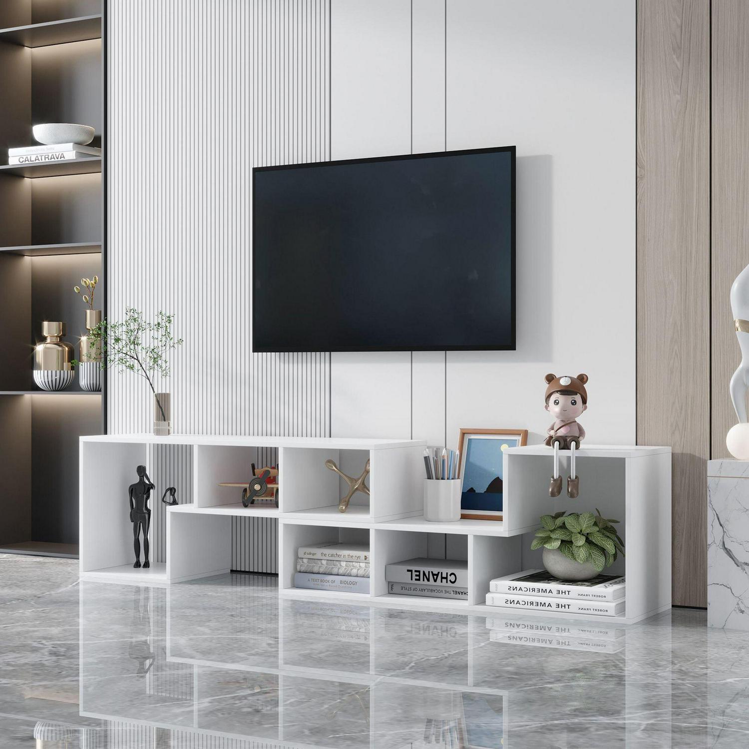 Aukfa TV Stand with Bookcase and Display Shelf- White