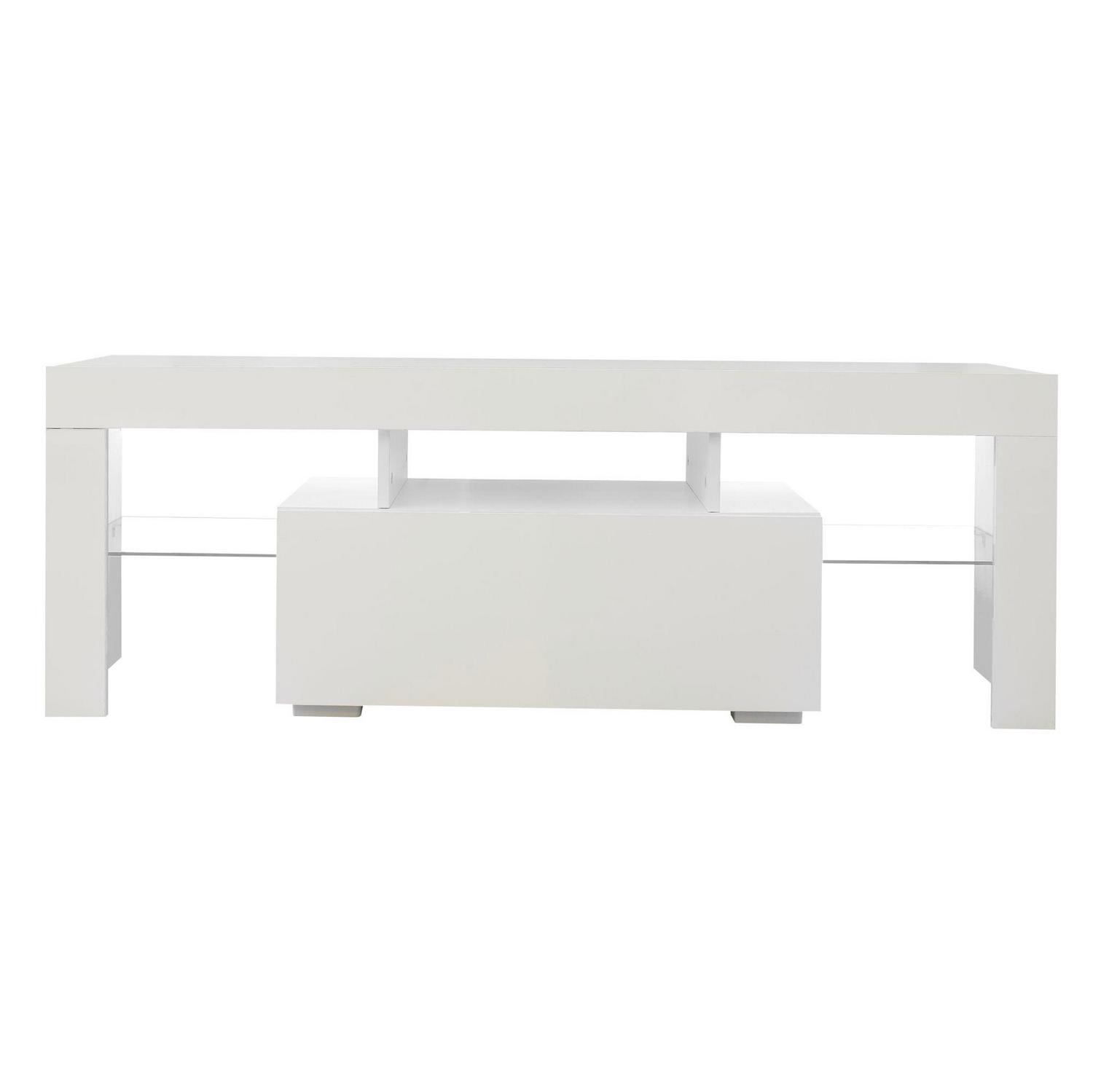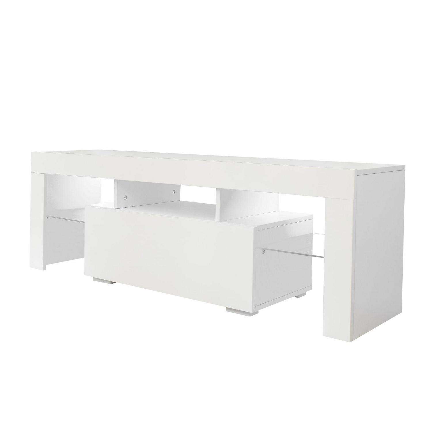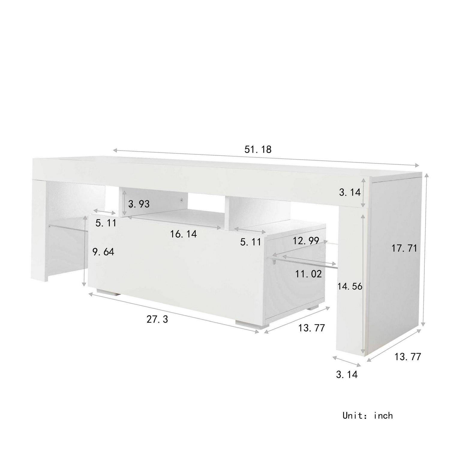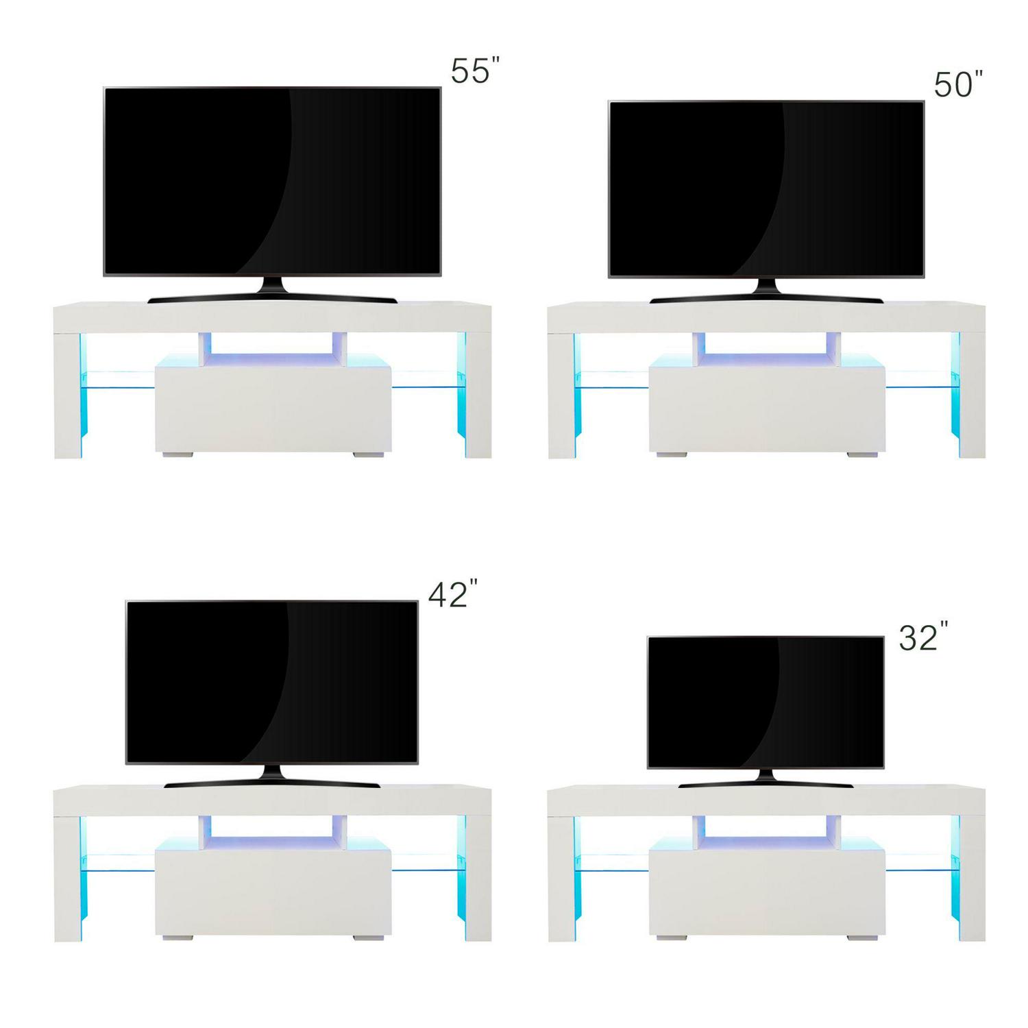 – MODERN TV STAND -The entertainment center features 20 colors LED lights system with remote ON/OFF and color control, this modern TV cabinet is compatible with various places and adjusts the lights of different colors according to different preferences,making the whole home show different styles of charm.