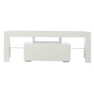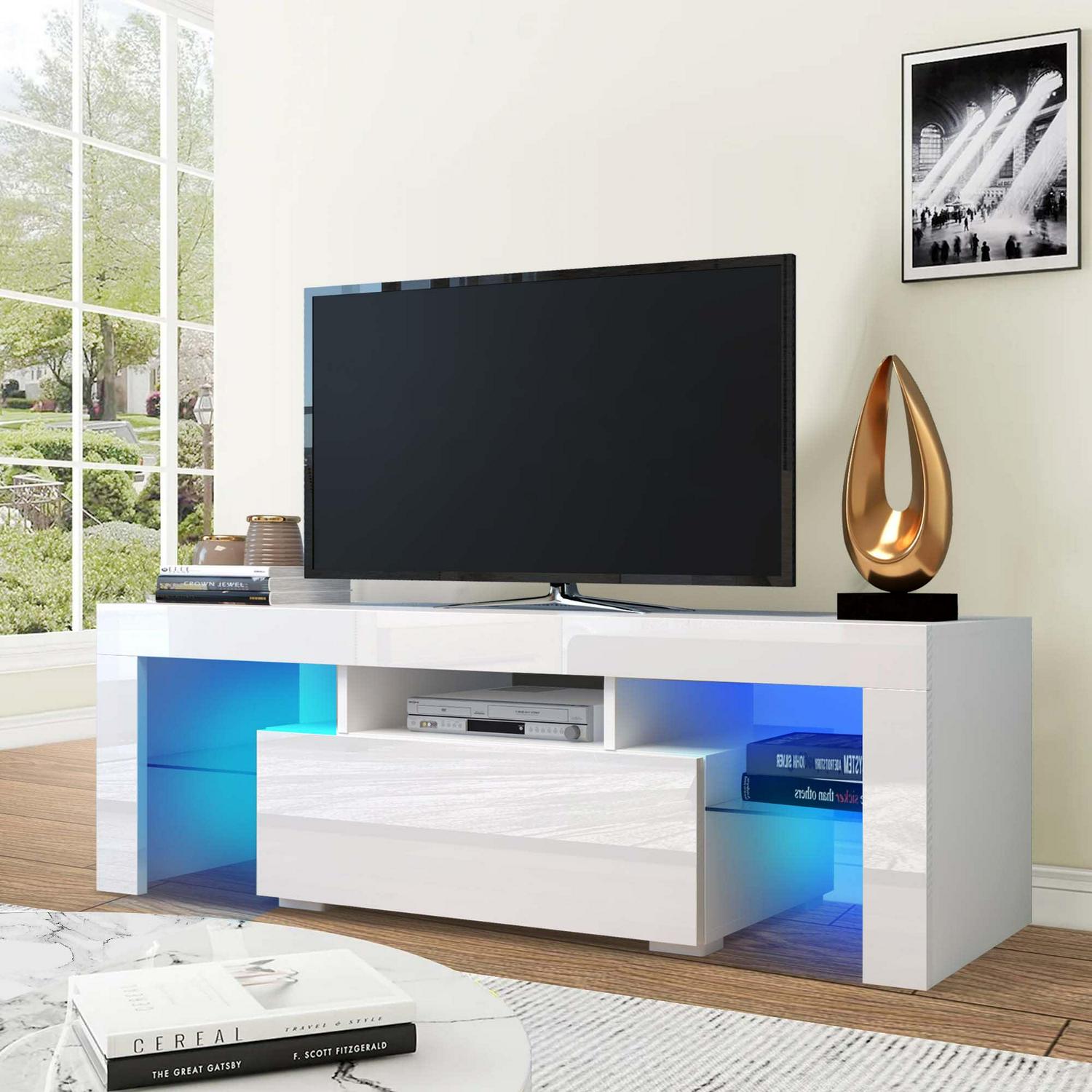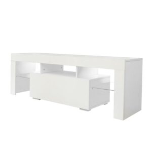 Aukfa TV Stand with LED Lights and Cabinets for TVs up to 55 – White