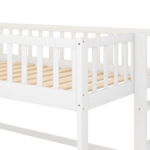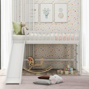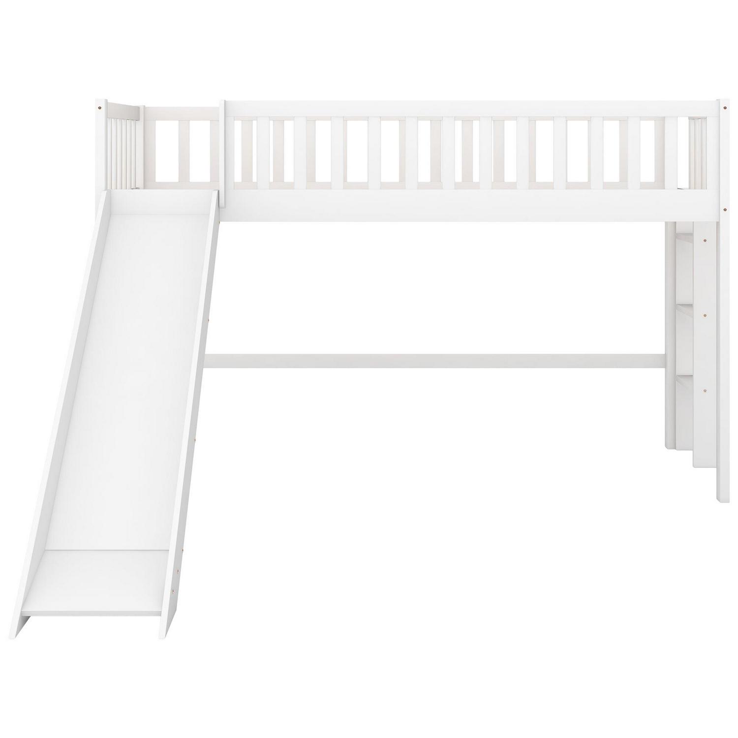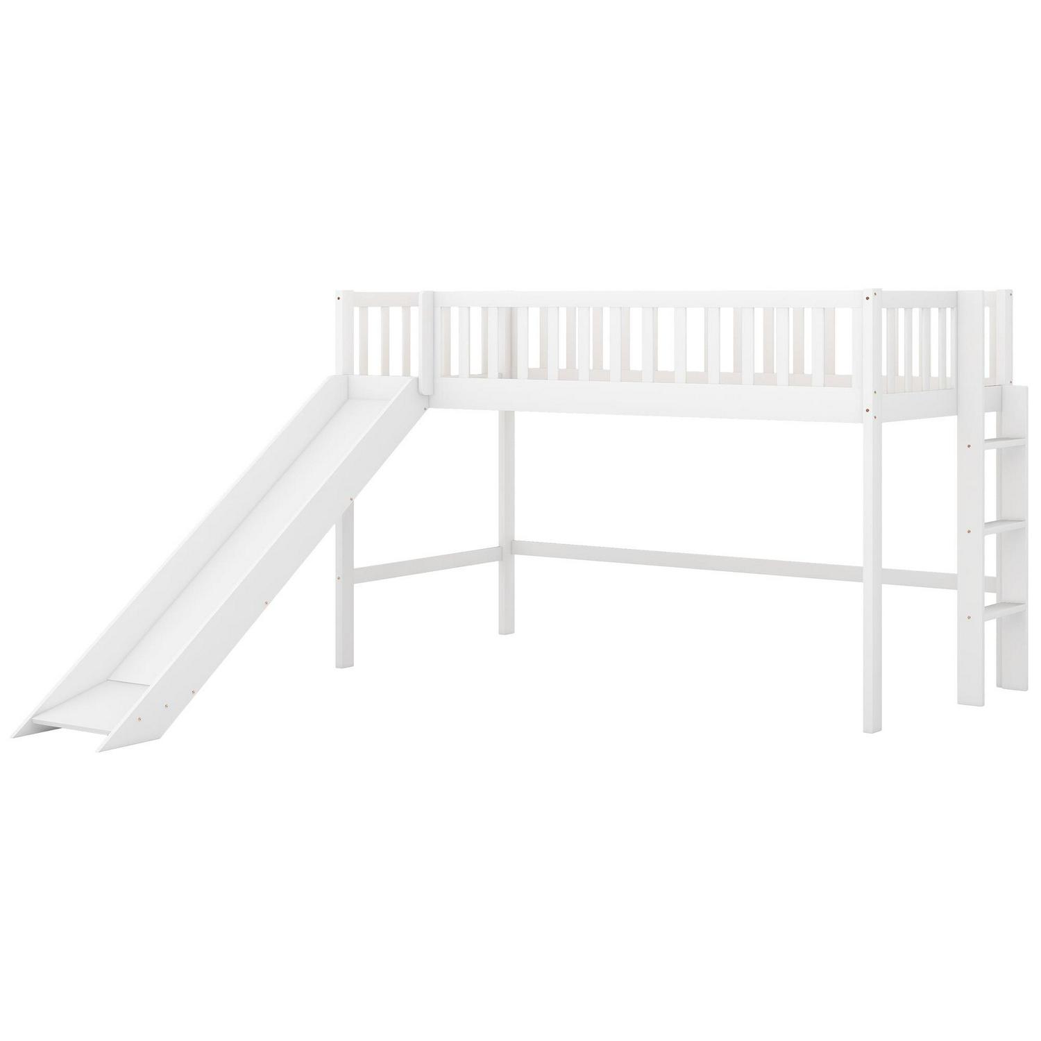 Aukfa Twin Loft Bed with Slide, Solid Wood Bed Frame for Kids – White