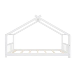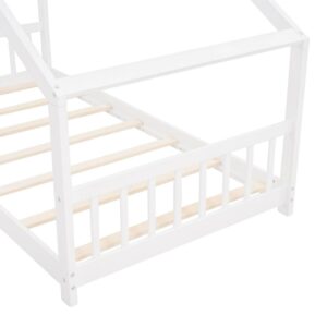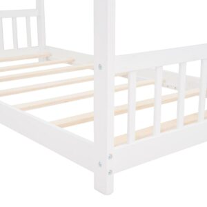 Aukfa Twin Size Wood House Beds Frame – Floor Bed Twin Platform Bed for Kids Teens Bedroom – White