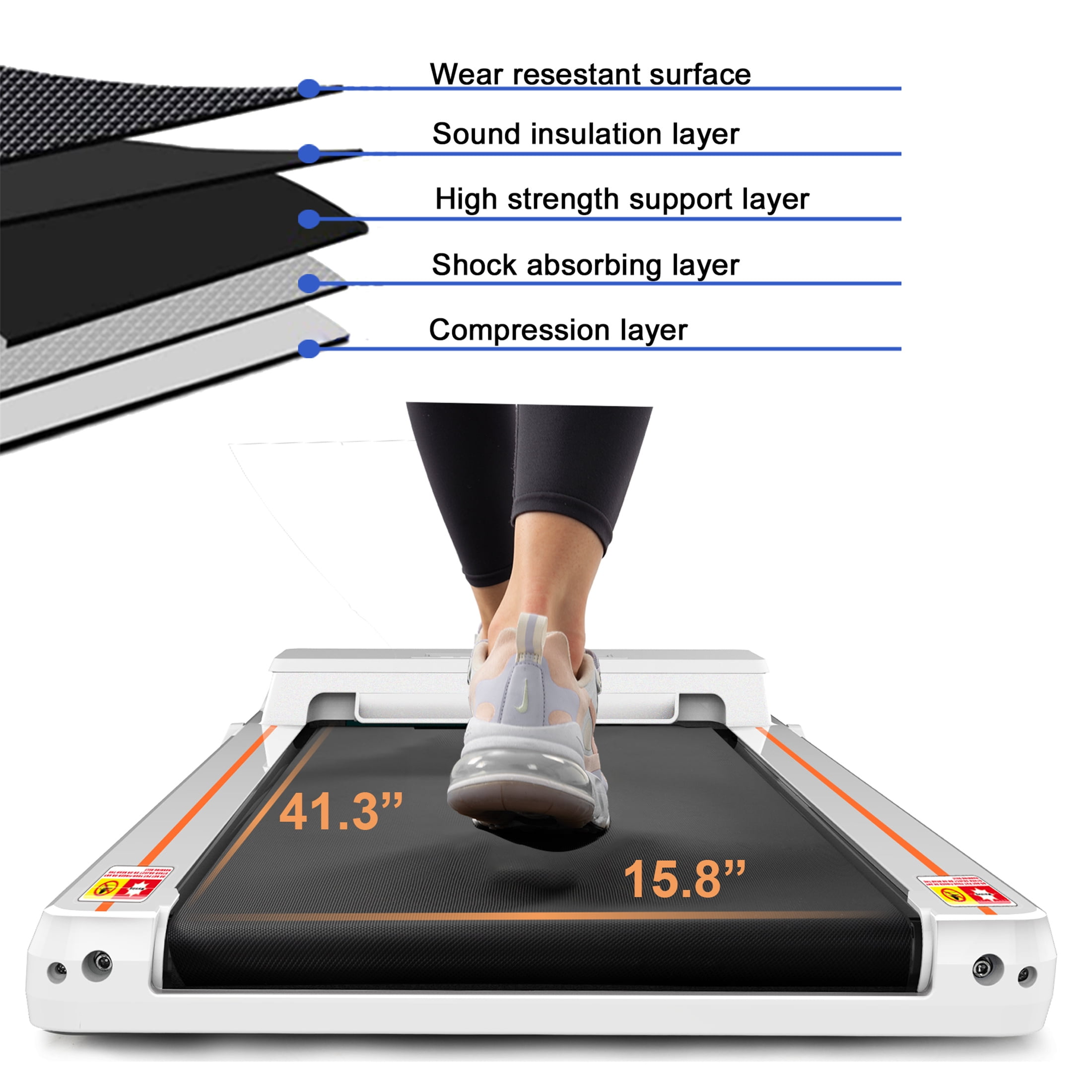 Aukfa Under Desk Treadmill- 2.5 HP Slim Running Walking Pad- 265 lbs Capacity- APP Bluetooth for Home Office Use