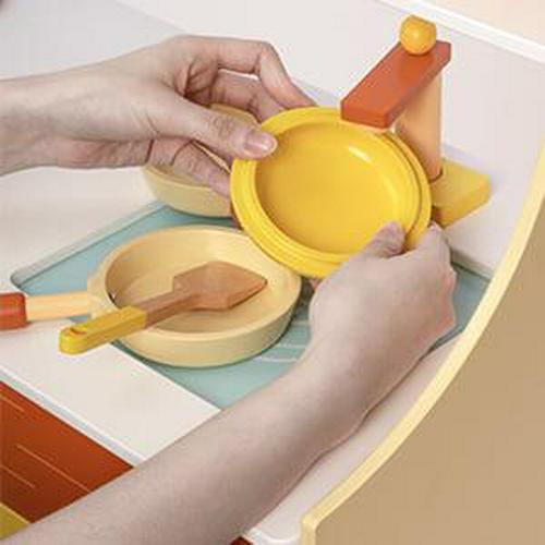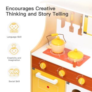 AUKFA Yellow Wooden Play Kitchen Set – Kid’s Role Playing Cooking Set