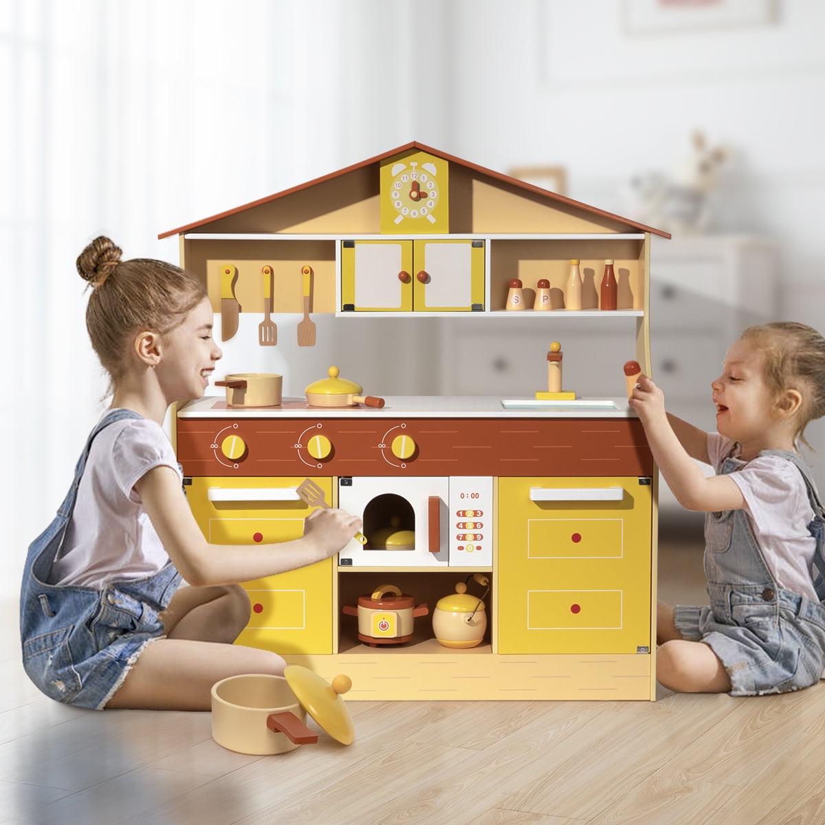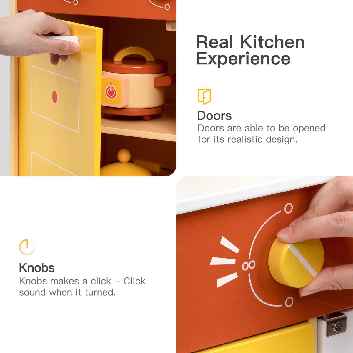 – DURABILITY – The play kitchen set is made of wood,meet the strictest safety requirements.Ideal for toddlers,especially for ages 3+.Despite its Super Extensive Design, Playset is Fast and Easy to Assemble with All Hardware and Instructions Included.