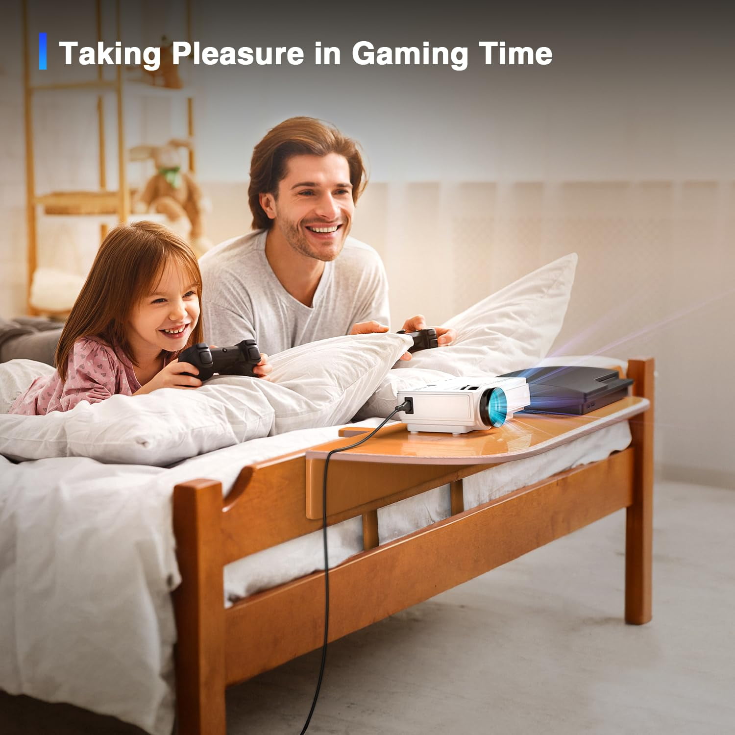 ★【Superior Home Theater Projector 】2021 Upgraded mini projector equipped with 2000:1 contrast ratio, supported 1080p resolution, brings you a 35% brighter images than similar projectors in market. It provides you with a premium home cinema experience with the bigger screen and clearer image. ★【Big Screen & Built-in Speakers】The mini projector has a 32~170 inches projection display size with 1m to 5m projection distance. Built-in speakers offer excellent loud sound quality, you can also connect it to external speakers to meet your higher quality sound needs. ★【Low Noise & Long Lamp Life】The projector is lower in noise and more durable than previous models thanks to advanced fan cooling technology. Powerful cooling system cools the heat of lamp efficiently, extending the bulb life to 55,000 hours, which means you can use it more than 15 years. ★【Multiple Devices Connection & Portable】This portable movie projector is fit for playing videos, TV series, photos sharing, football matches etc. It can be easily connected with laptops, smartphones, tablets, USB drives, X-Box ONE to enjoy big games. ★★★When connect with phone, an extra HDMI adapter is needed. Please kindly note projectors with mirrored are incompatible with Netflix and Hulu due to copyright issues.★★★ ★【2 Year Satisfied Warranty】Our team offers every customer 100% satisfaction guarantee. If you have any problems while using, please feel free to contact us. Please rest assured that we also have 2 year warranty. Not recommended for PPT, or business presentation, it is a home theater projector. You can enjoy the fun at outdoor journey in dark.