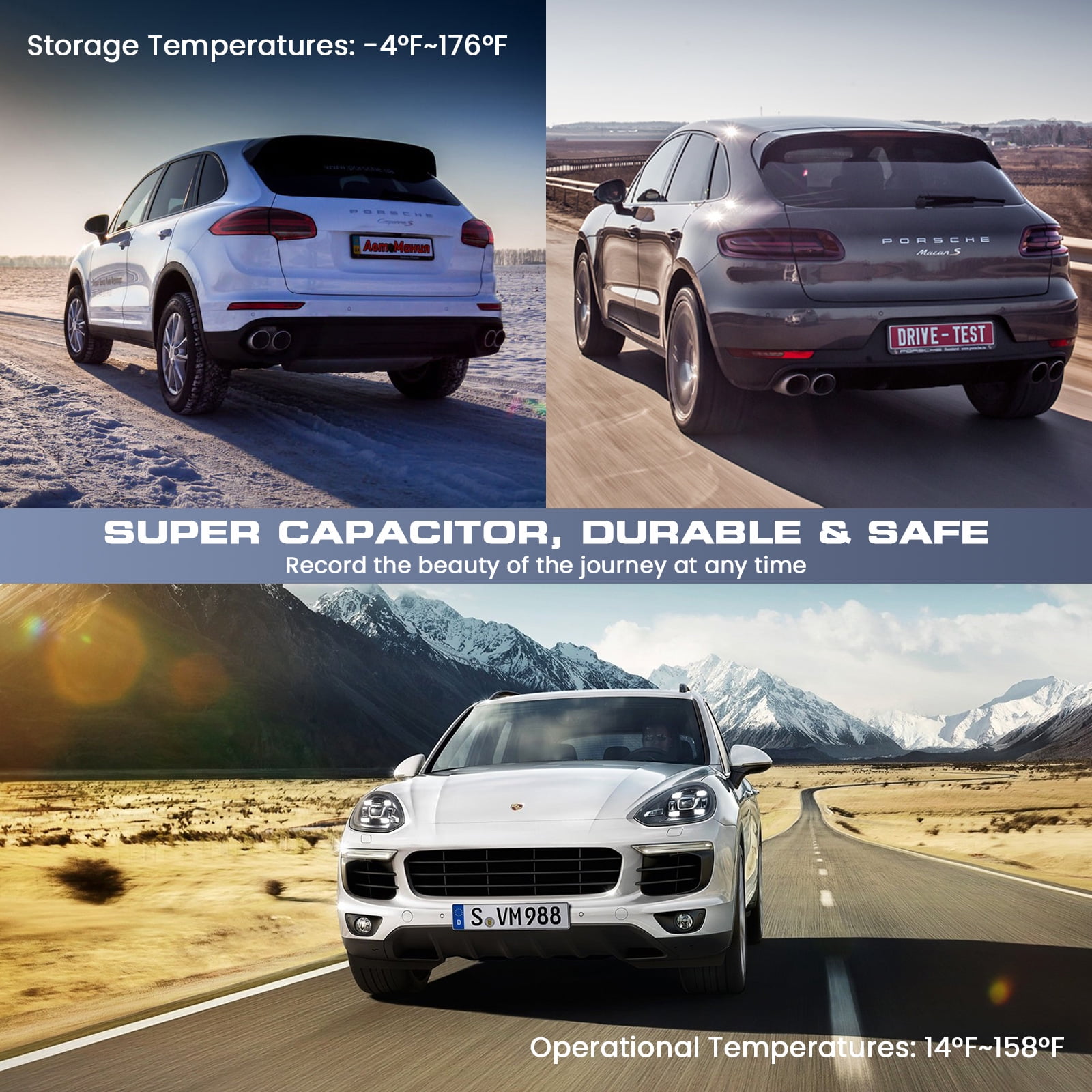 【4K/2.5K+1080P+1080P FHD RECORDING】: 4K+1080P(inside or rear) dual dash cam and 2.5K+1080P+1080P three channel front inside rear dash camera multiple video resolution and recording modes to choose from. This Dashboard Camera also can take pictures. The adjustable inside camera and 360° adjustable ring rear camera ensure more flexibility and better viewing. 【BUILT-IN WI-FI AND EXTERNAL GPS】: With the built-in Wi-Fi function and the free app, the vehicle black box camera is intuitive to change settings and easy to control the cam, view, download, and share the videos. Equipped with an external GPS module enables the dash cam to precisely pinpoint the vehicle’s location and routes on the map, and also automatically correct the time display on the car camera screen by synchronizing with the satellite. 【3.16″ IPS SCREEN AND SUPERIOR NIGHT VISION】: This dual dash cam features a 3.16″ IPS screen and excels in capturing video and audio. The wide-angle front camera (170°), cabin inside camera (140°), and rear camera (140°) work together to minimize blind spots and ensure detailed recordings. The driving recorder is equipped with IR Light / WDR technology, enabling it to capture crystal-clear images during nighttime or in low-light conditions. 【LOOP RECORDING & 64GB CARD INCLUDED】: The dash cam front and rear will automatically replace old videos with the newest ones. Locked audio and pictures will be safe from overwriting, and will only be replaced after unlocking. This car accessories para carro supports high-endurance U3 (and above) microSD cards, supports from 512MB up to 256GB, and comes with a free 64GB TF card. Remember to format your SD card before recording. The car camera front and rear will start recording immediately after igniting. 【24-HOUR PARKING MONITOR / SMART ACCIDENT MONITORING】: If the G-sensor detects any impact while the vehicle is parked, it triggers a 15s automatic video recording. The video will be locked and saved to prevent it from being overwritten and delete. Activate the 24-hour parking monitoring mode of this car camera by connecting it to an external power source or using a hardwire kit (hardwire kit not included). 【ADVANCED G-SENSOR & EMERGENCY RECORDING】: The dashcam comes equipped with an advanced G-Sensor that promptly detects collisions or impacts. Once triggered, the intelligent driving recorder automatically locks and preserves the collision footage. These crucial emergency videos are securely stored as ‘Event Files’ to prevent accidental deletion and overwrite. Moreover, if you see something interesting/important on the road, you can manually lock the current video by simply pressing the lock button. The Event file video duration can be set by yourself. 【DURABLE & SAFE WITH SUPERCAPACITOR】: This dash camera for cars operates using a supercapacitor, enhancing its durability in harsh temperatures. Built to endure storage temperatures: -20℃~80℃ (-4°F~176°F), and operational temperatures: -10℃ ~ 70℃(14°F~158°F), it thrives in extremely hot and cold. The supercapacitor innovation extends battery life beyond traditional lithium-ion batteries. 【2-IN-1 CAR CHARGER】: This dash camera for the car is Type-C charging port. Compatible with various vehicles including cars, SUVs, and Jeeps. The car charger adds a USB port to simultaneously charge other devices, addressing all your charging needs on the go. Warm Tips 1. This dash cam with card builts in a 300mAh battery is just for emergency recording and saving settings. 2. Please keep the car recorders camera plugged in always, the vehicle camera will shut down when there is no external power connection. 3. Please format the SD card (have inserted into the “TF” port of the dash cam before packaging) on the dash camera before using. 4. If you want the car camera’s screen off but the dashcam still keeps a record, simply select “Screen Saver” in the settings and the dashcam will keep a normal record. 5. The button sound can be turned on/off, just select “Key Sound” in the settings to set it. 6. More function settings can be selected and set through the “Menu” button 7. To use the parking monitor, please connect Hardwire Kit(not included). 8. For a longer life span of the dash cam using, please don’t expose the dash cam to the sun directly when you are not in the car. 9. Installation Location: To ensure safe installation, the driving recorder should neither obstruct the driver’s view nor interfere with airbag deployment. generally recommended place it near the upper center of the car windshield. 10. Any problem please drop us a message we will respond within 24 hours and provide a satisfactory solution.