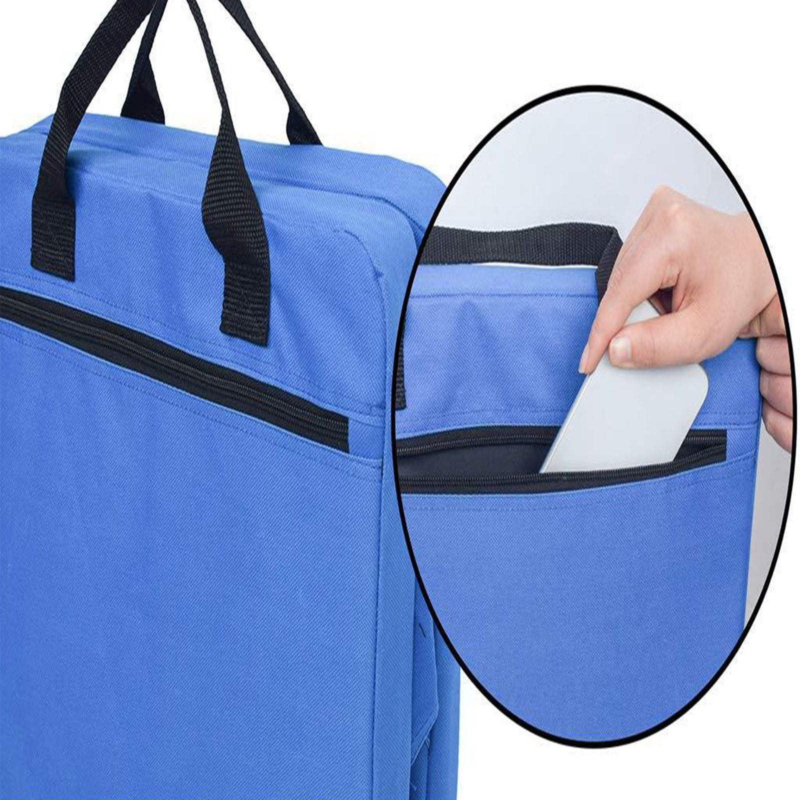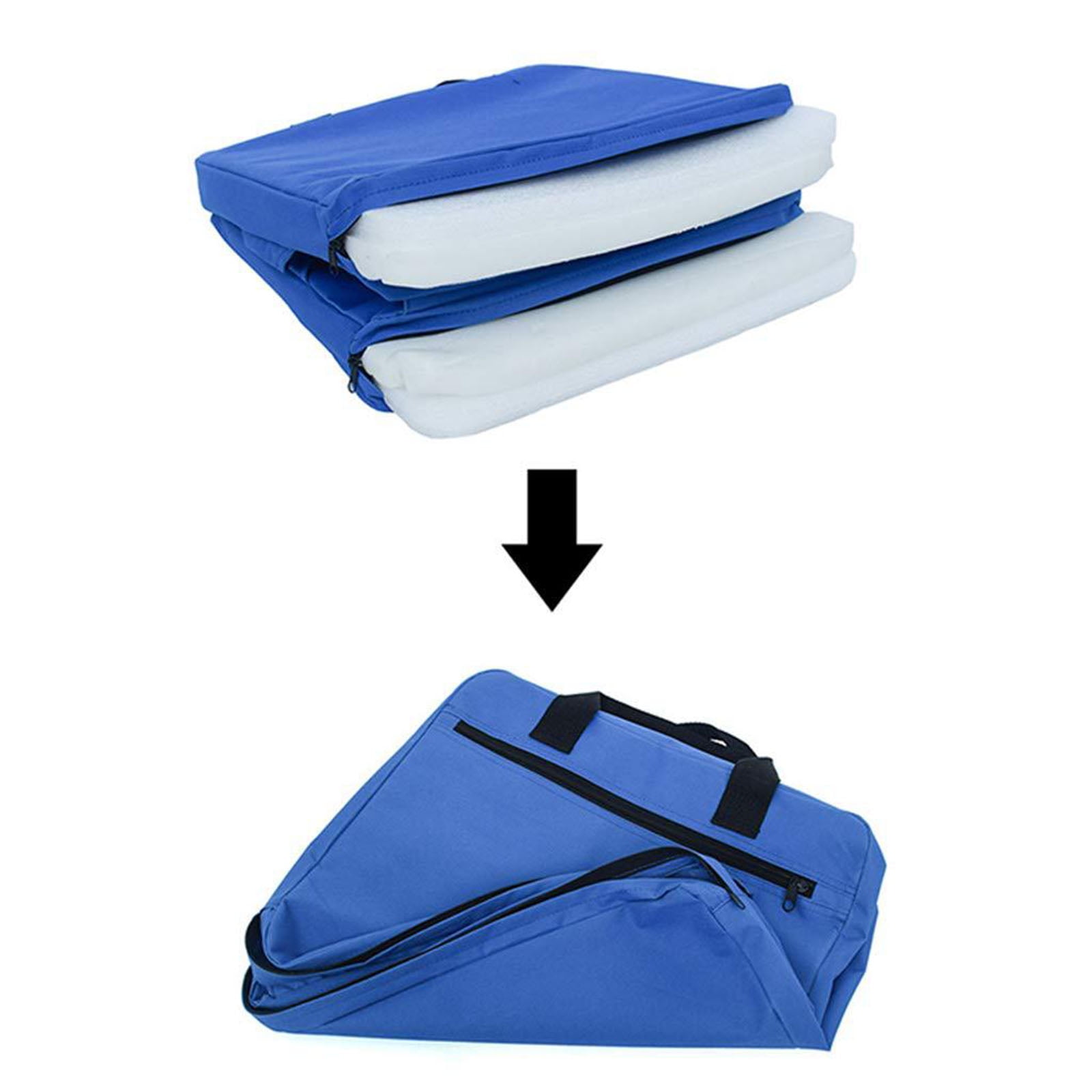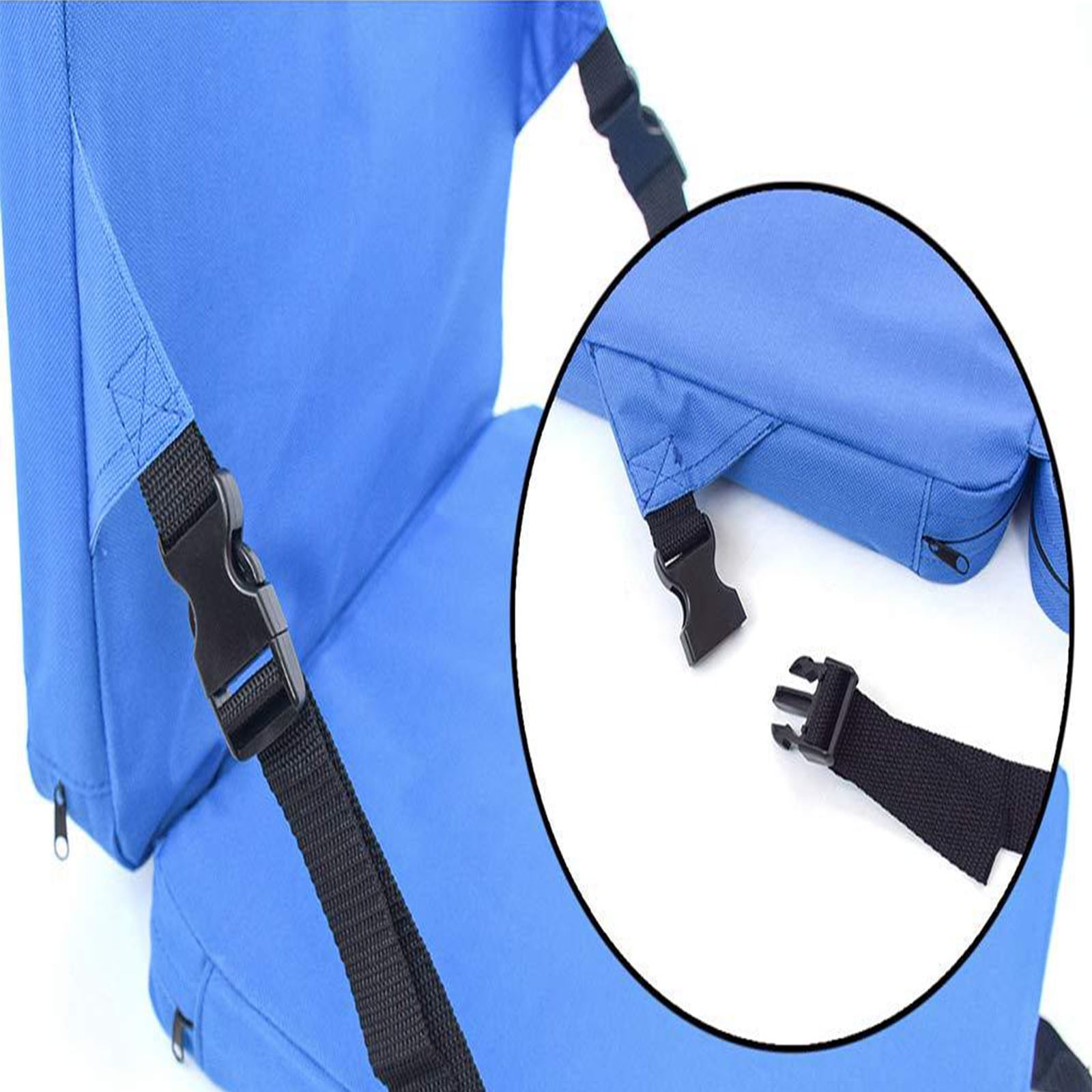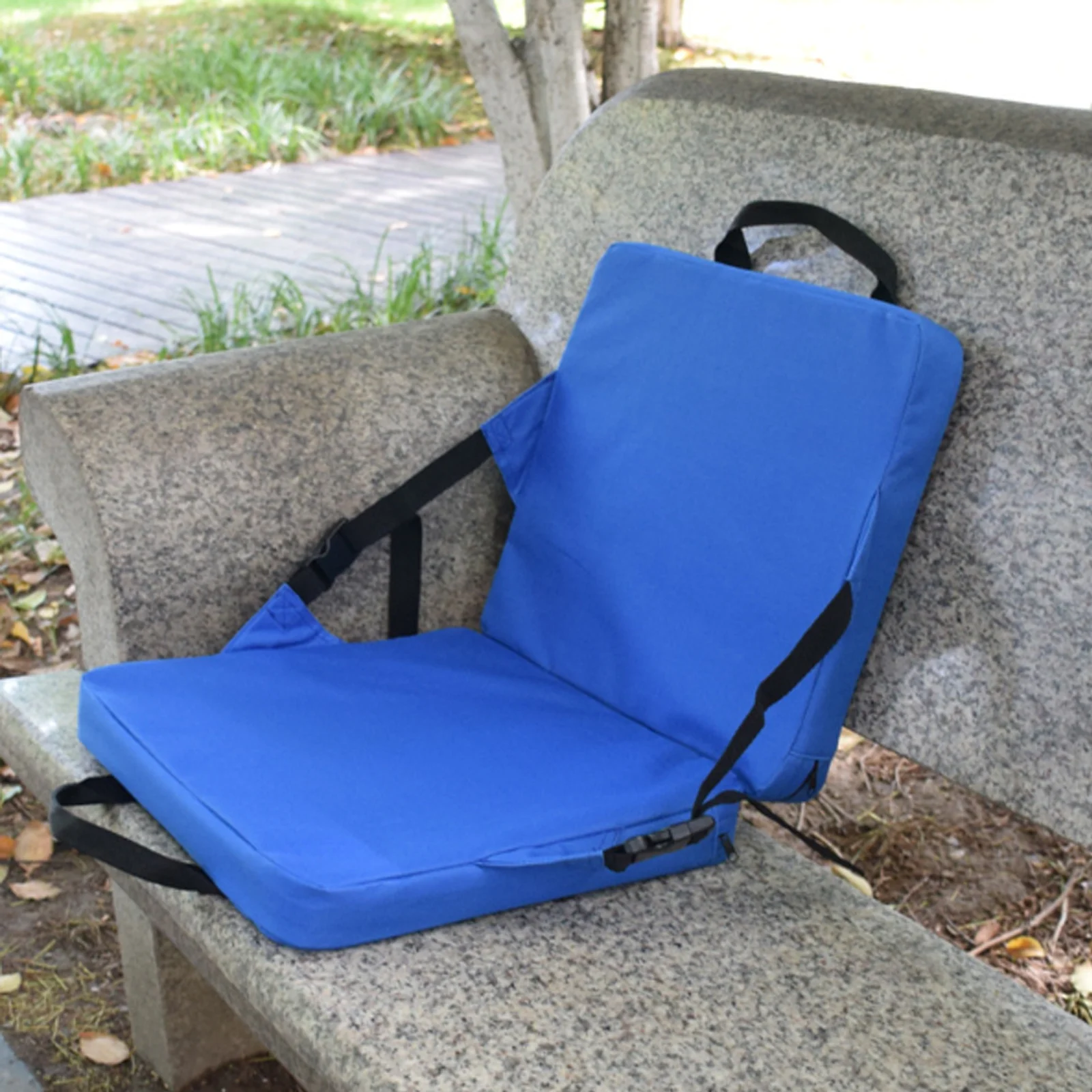 600D Oxford fabric: Durable and water-resistant for outdoor use. Cushioned padding: Provides comfort during extended seating. Foldable and portable: Easy to carry with a built-in handle and strap. Versatile use: Ideal for stadiums, camping, beach trips, and more. Supportive backrest: Offers added comfort for long sitting periods. Package list: blue cushion with backrest *1