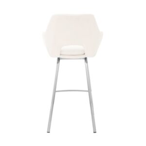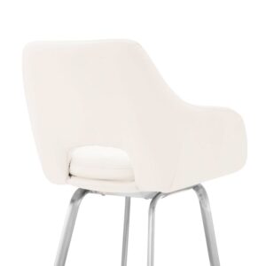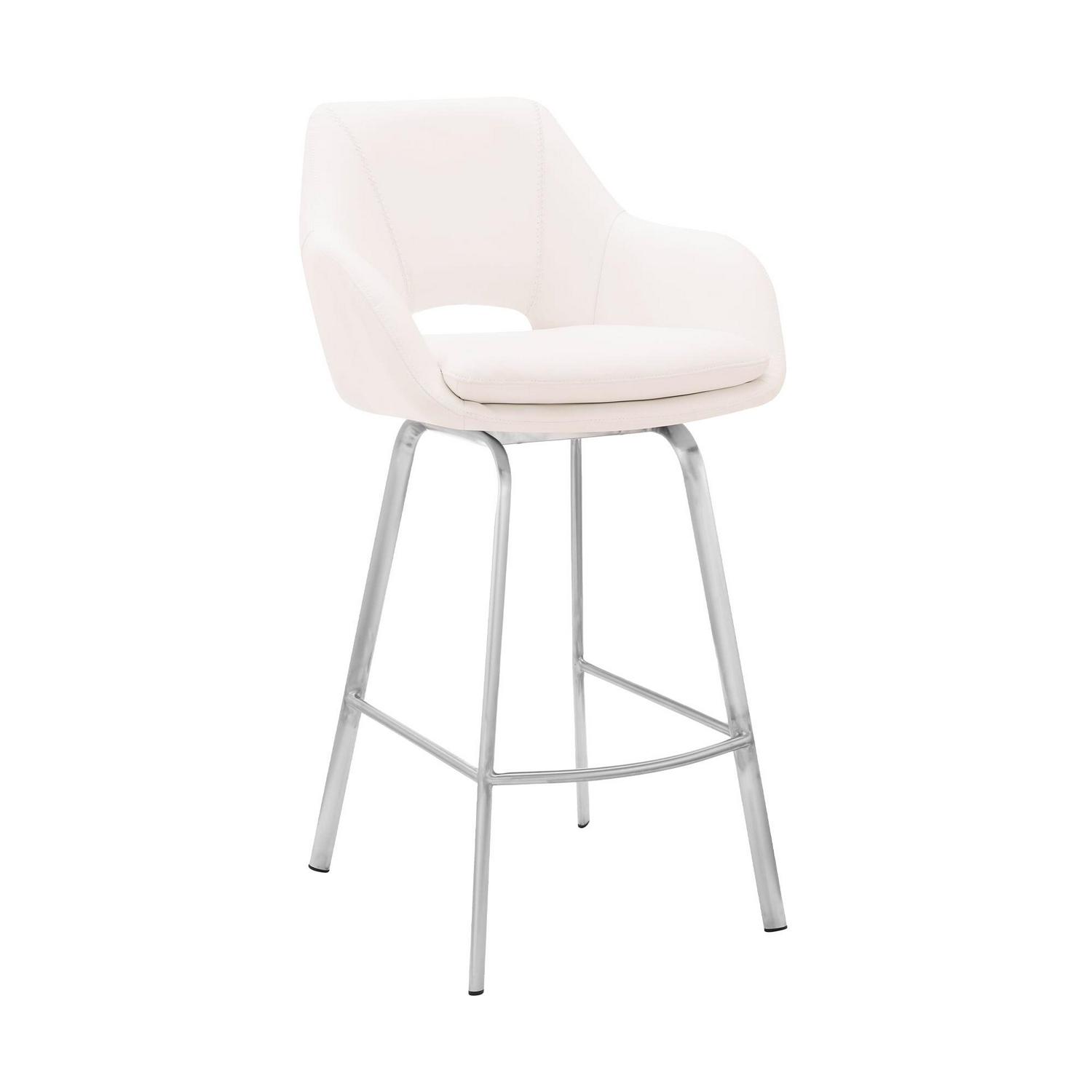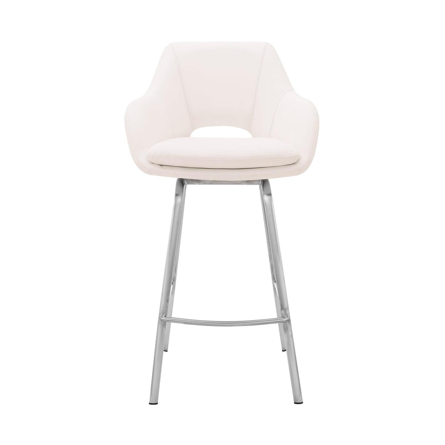 Aura White Faux Leather and Brushed Stainless Steel Swivel 26 Counter Stool