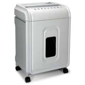 – High security micro-cut with 12 sheet capacities; destroy CDs, DVDs, credit cards, staples and small paper clips