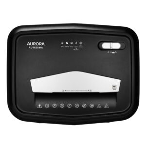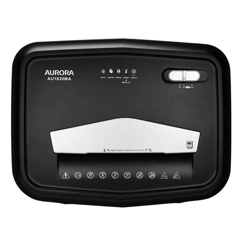 The Aurora GB AU1630MA 16-sheet micro-cut paper/ CD/ credit card shredder with 5.0-Gallon pullout basket is the perfect business and home office device to keep you safe from identity theft. The AU1630MA accepts up to 16 sheets of paper at a time and shreds them into small pieces (5/32 by 15/32 inches), security level P-4. Ultimate protection with particles 4 times smaller than standard cross-cut. Anti-jam Auto-reverse to clear paper jams. Non-stop 10-minute continuous run time and quiet operation.