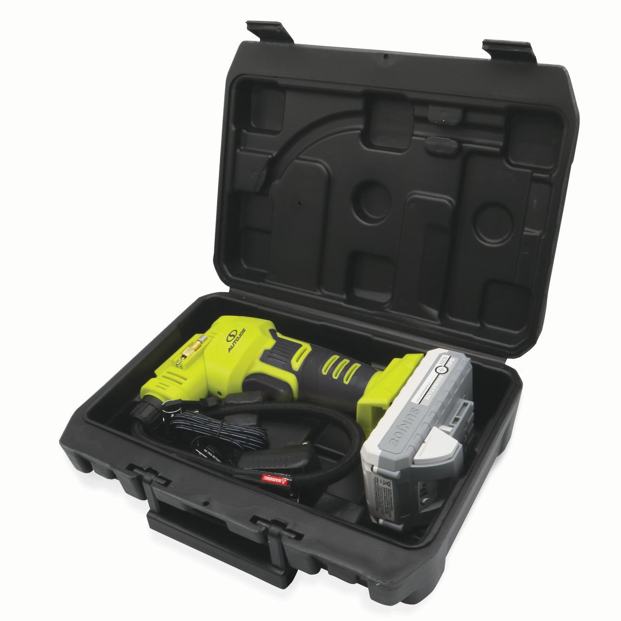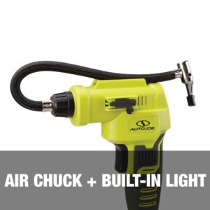 When the air is low — pump it up — and Go With Joe! Skip the trip to the gas station and reach for the powerful portable air compressor that fits in the palm of your hand with the 24V-AJC-LTE 24-Volt Cordless Air Compressor from AUTO JOE. Compact and convenient for camping, or commuting – it s the power-packed rechargeable pump that s perfect anywhere power is at a premium — like at the park, at the pool, or on the road. Keep tires at the perfect pressure, inflate a bike tire, pool float or sport ball in seconds. Simply set the PSI on the digital display and pull the trigger. The 24V-AJC-LTE automatically stops at your preset pressure. Unlike bulky gas-powered or electric tools, AUTO JOE s 24-Volt cordless compressor employs the most advanced lithium-ion battery technology for no fade power, and peak performance under pressure! When the work is done, simply plug the battery in, power it up and it s recharged and ready for your next inflation project!