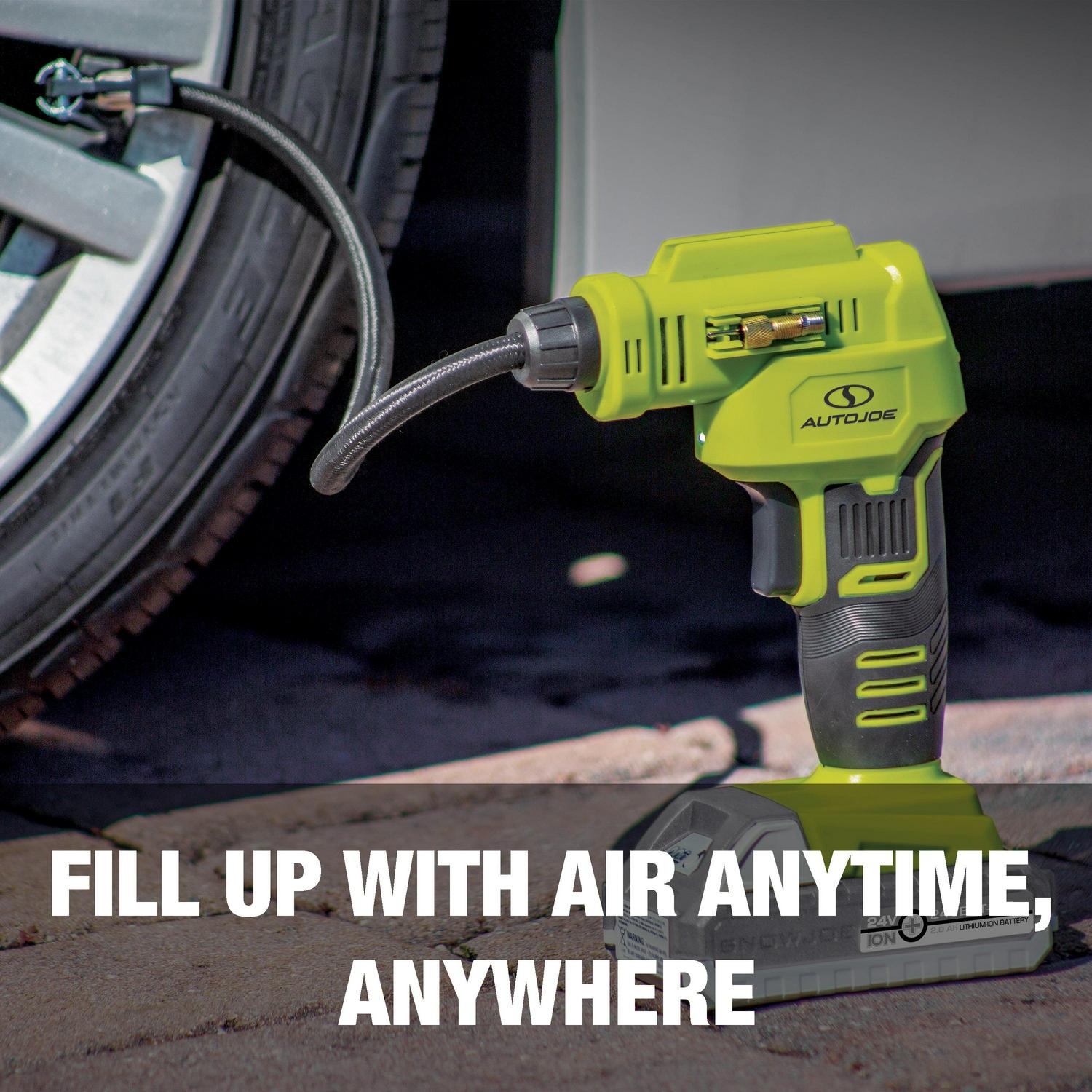 Auto Joe 24V Cordless Portable Air Compressor W/ Nozzle Adapters, 2.0-Ah Battery and Charger (Green)