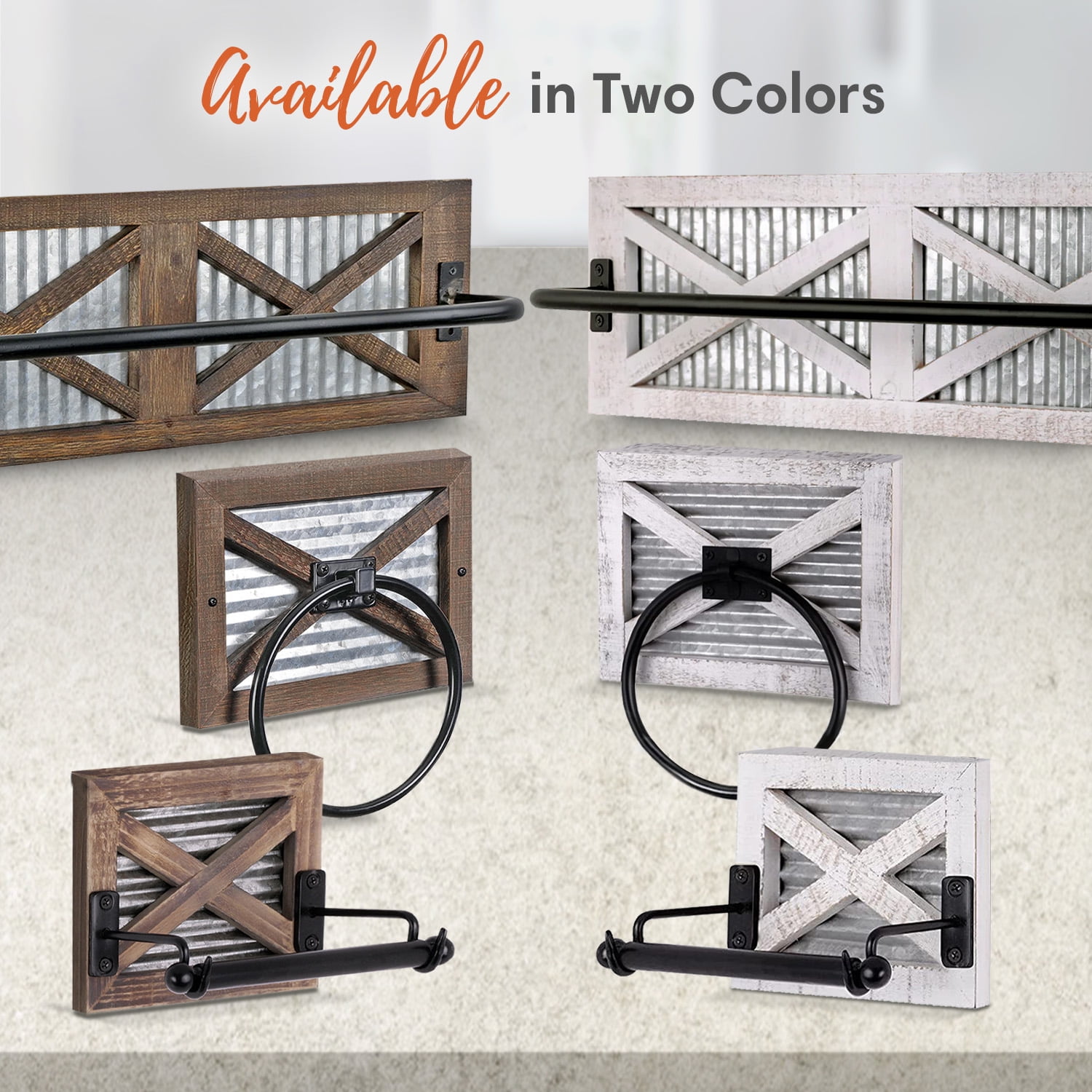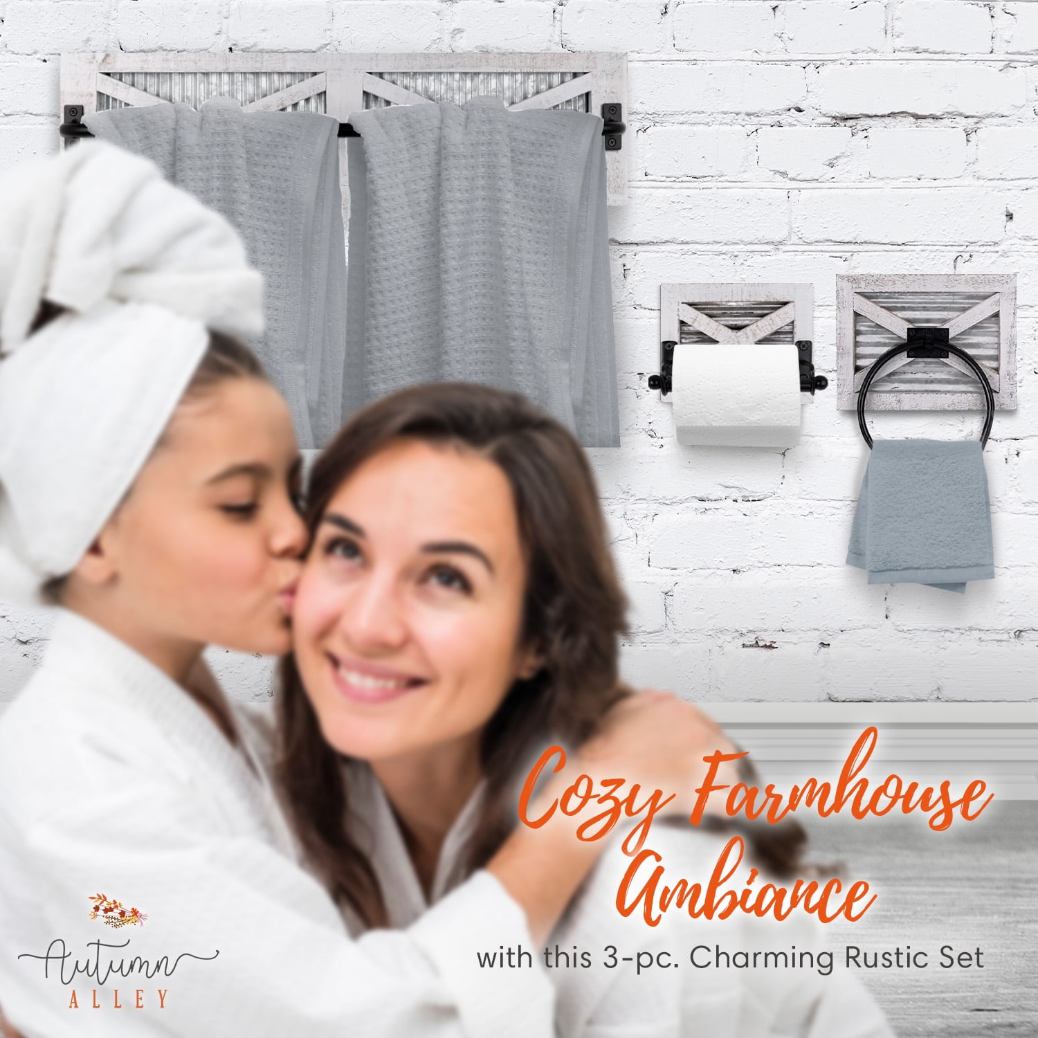 Autumn Alley Farmhouse Toilet Paper Holder, Towel Ring for Bathroom, Farmhouse Towel Rack Holder Set, 3PCS, Wall Mount for Farmhouse Bathroom Decor and Accessories, Rustic Wooden, White