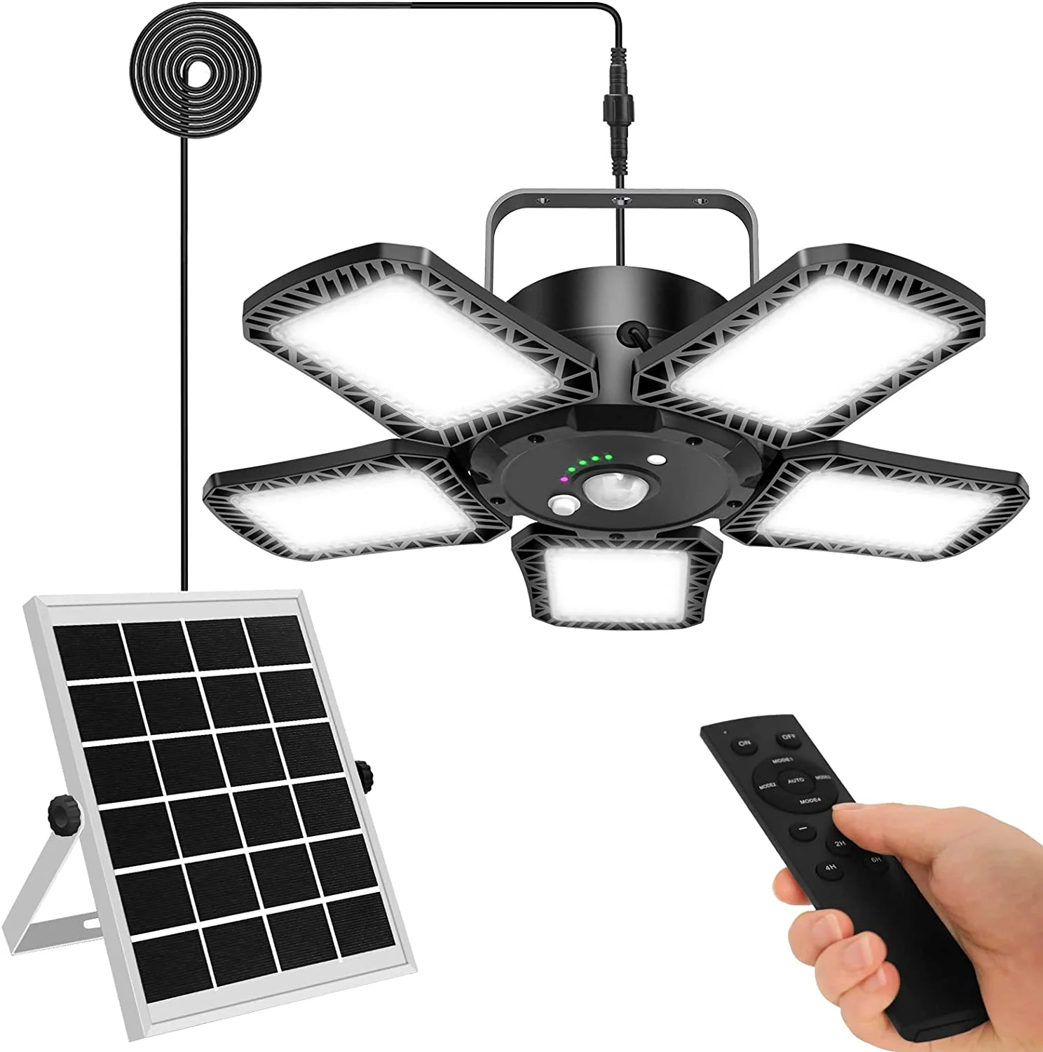 Auzev Solar Shed Light Indoor/Outdoor Work in Daylight, 160LED 1200LM Solar Pendant Light, 5-Leaf 120° Adjustable Solar Motion Sensor Light with Remote & 6 Lighting Modes for Shed Gazebo Barn