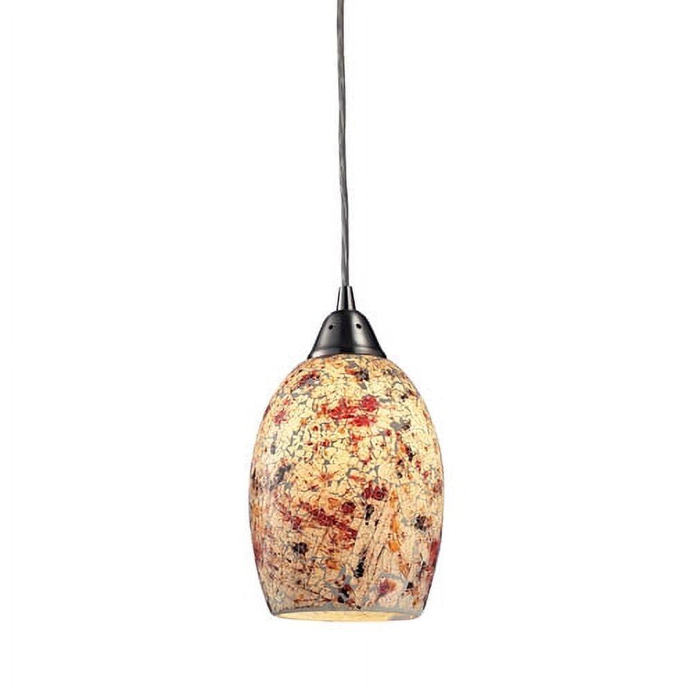Avalon 1-Light Mini Pendant in Satin Nickel with Multi-colored Crackle Glass