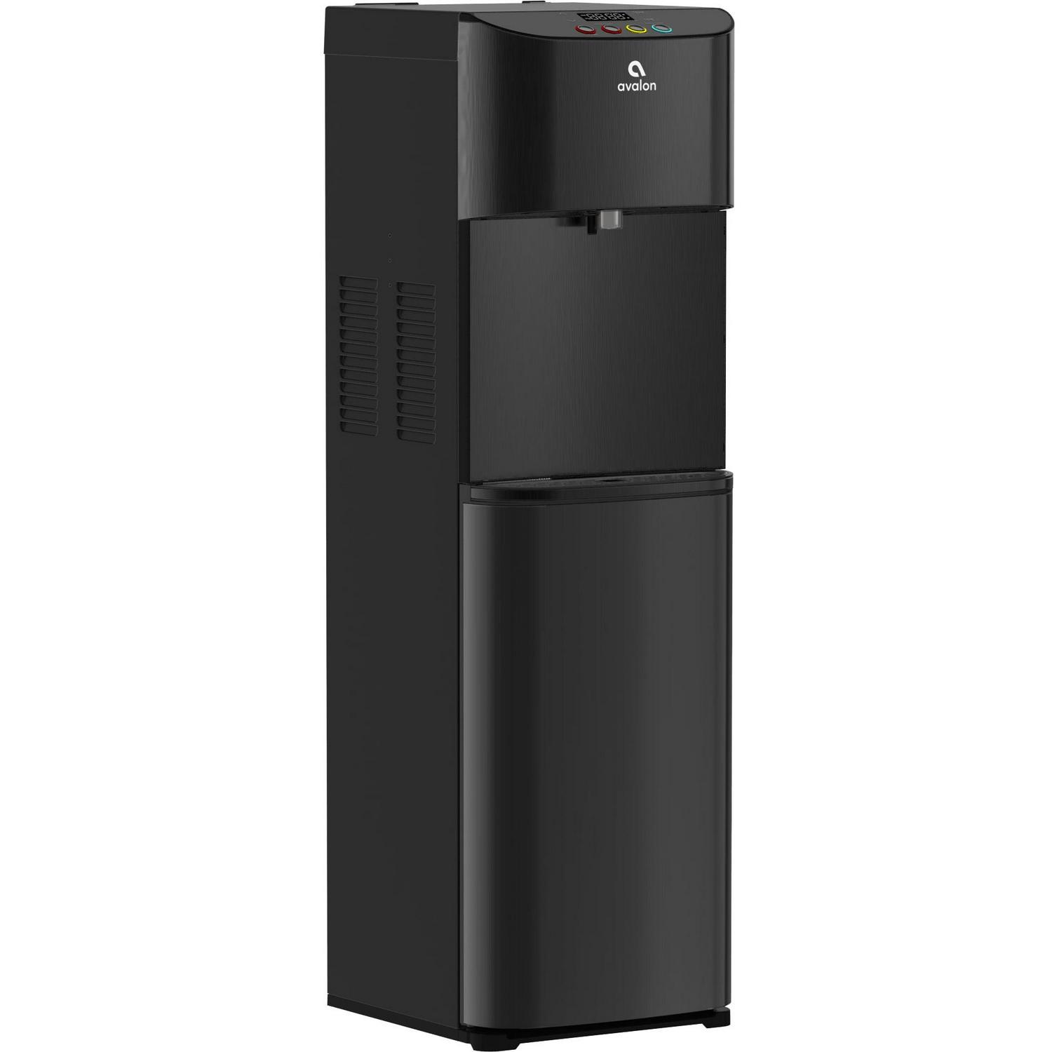 The Avalon Electric 3 Temperature Bottleless Water Cooler is made with an innovative design. It offers a choice of 3 water temperatures to choose from. The easy-to-use electronic buttons make it so much more convenient to use. Simply press the button of choice and allow the water to flow from the spout. The machine’s highly efficient compressor makes the cold water crisp and ice cold at approximately 47° F without the need of adding ice cubes to your drink. The hot faucet is hot enough to cook one’s tea or coffee or any other steaming hot beverage at approximately 185° F. There is a digital display with a clock as well as digital temperature control allowing you to adjust the hot and cold to your preferred temperature. The tanks hold 1 liter of hot water and 3.6 liters of cold water. There is a built-in nightlight making the water spout clearly visible in the dark. The dispensing area is 12×3.25×8.75 inches with 7.5 inches of space below the spout. This will accommodate most large cups or bottles. This water cooler is bottle-less with an NSF certified activated carbon filter (listed as model Avalon A4FILTER) and a sediment filter (listed as model Avalon A5FILTER) along with a water line that can be attached to your water source. The water is taken from your water source and filtered through the filters and then through the machines hot and cold water tanks. The filters will purify the tap water eliminating any chlorine, lead, rust, and bacteria. There is also a built-in leak detector to automatically monitor the water flow from the water source into the machine. We have also incorporated a self-clean ozone function which will automatically clean the machine’s water tank with the injection of ozone by the press of a switch. The water cooler is UL listed. Setup is easy and the unit can be connected directly to your existing sink water line. All parts necessary for installation are included. The adapter to connect our water cooler tubing to an existing line is 3/8″ which will fit most standard water supply lines.