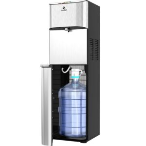 – BOTTOM LOADING: Our water cooler is bottom loading to eliminate the strain of lifting, reduce spills and is suitable for 3-5 gallon water bottles (BOTTLE NOT INCLUDED).
