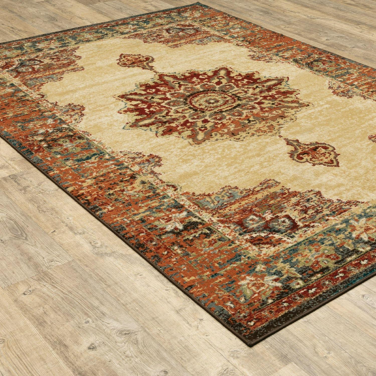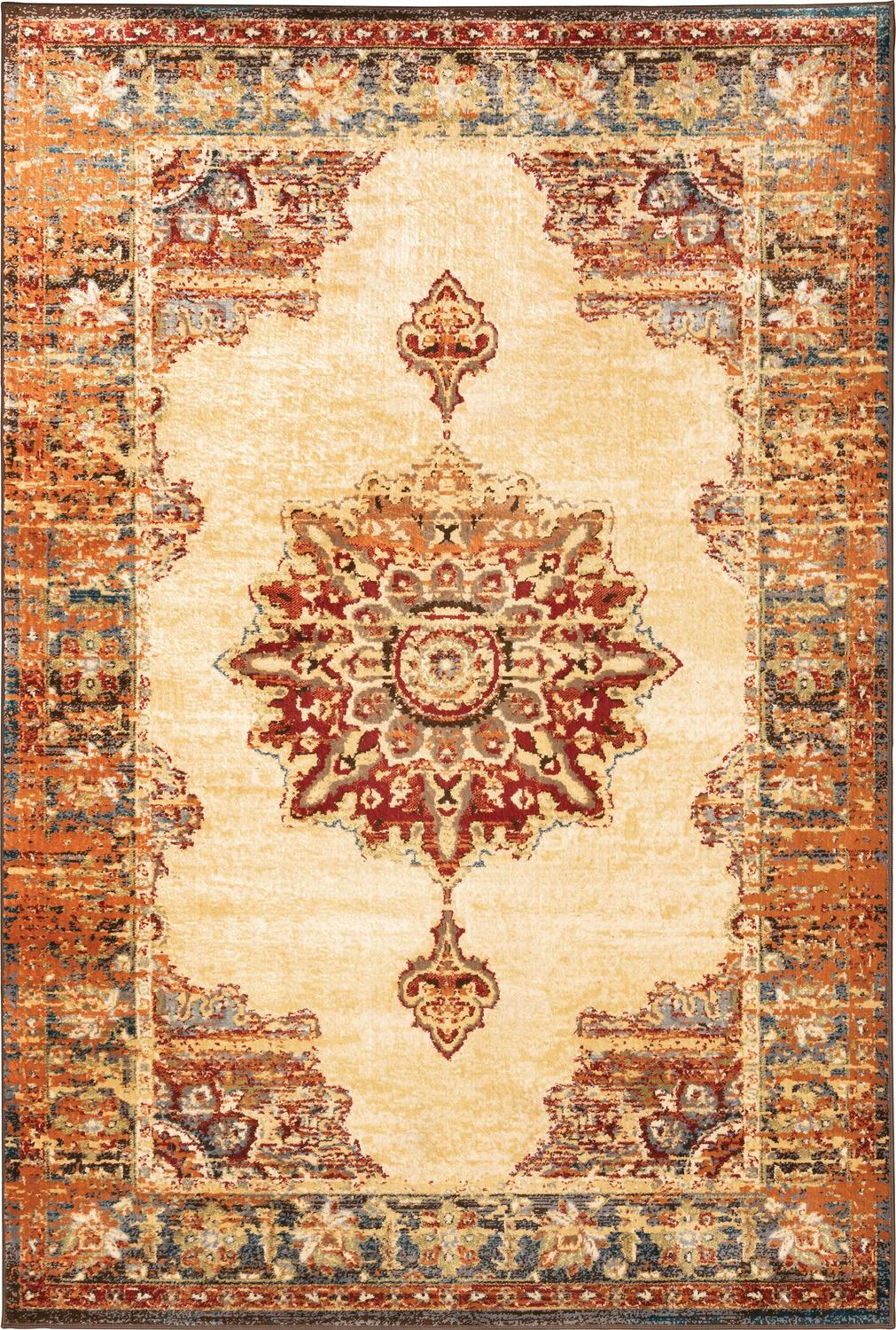 The Jasmine collection features warm, tonal neutrals with cinnabar red, pumpkin orange, deep teal and dolphin blue. Machine-woven of soft polypropylene, Jasmine showcases global and traditional Persian patterns with distressing to add vintage appeal to any decor.
