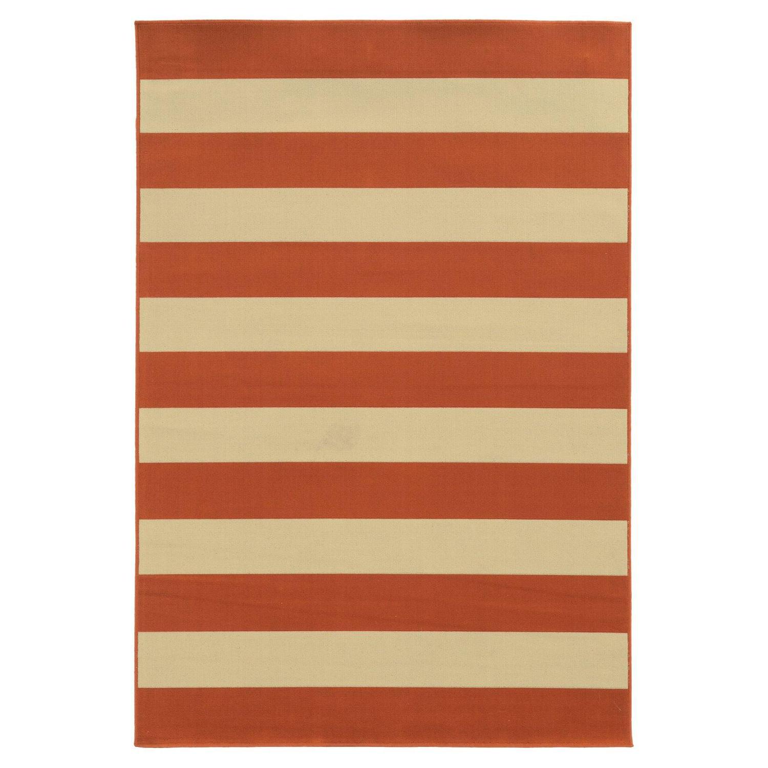 Stripes will never go out of style, ensuring that you’re making a smart investment when you buy the Avalon Home Roanoke Nautical Stripe Indoor/Outdoor Area Rug. Bright and poppy, it features orange and ivory and is available in your choice of size. This rug is machine-woven from durable polypropylene and is stain- and fade-resistant.