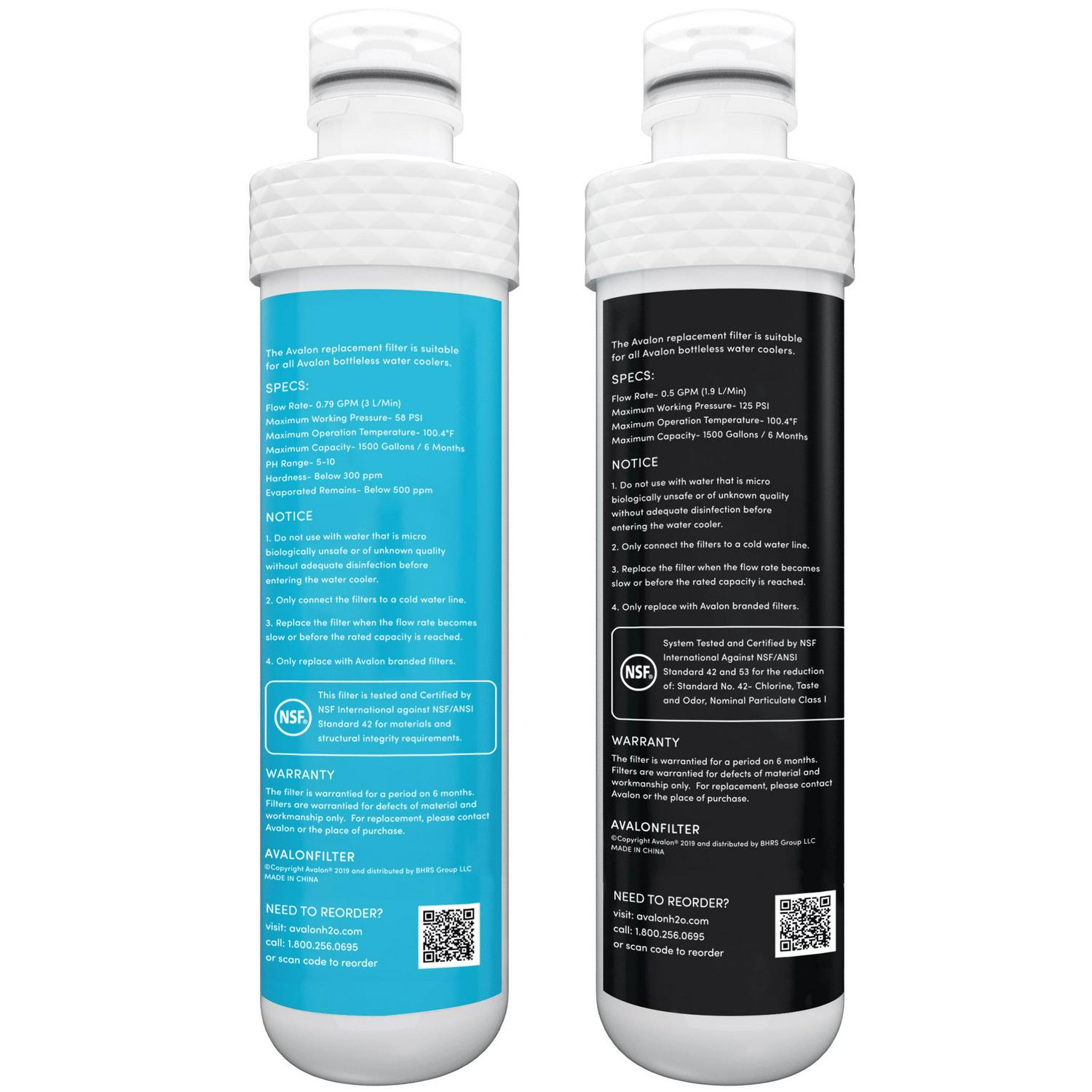 – DUAL FILTRATION: Patented Dual filters are included with the water cooler. This consists of a Sediment filter (listed as model Avalon A5FILTER) and a Carbon Block filter (listed as model Avalon A4FILTER) which will last 6 months or 1500 gallons.