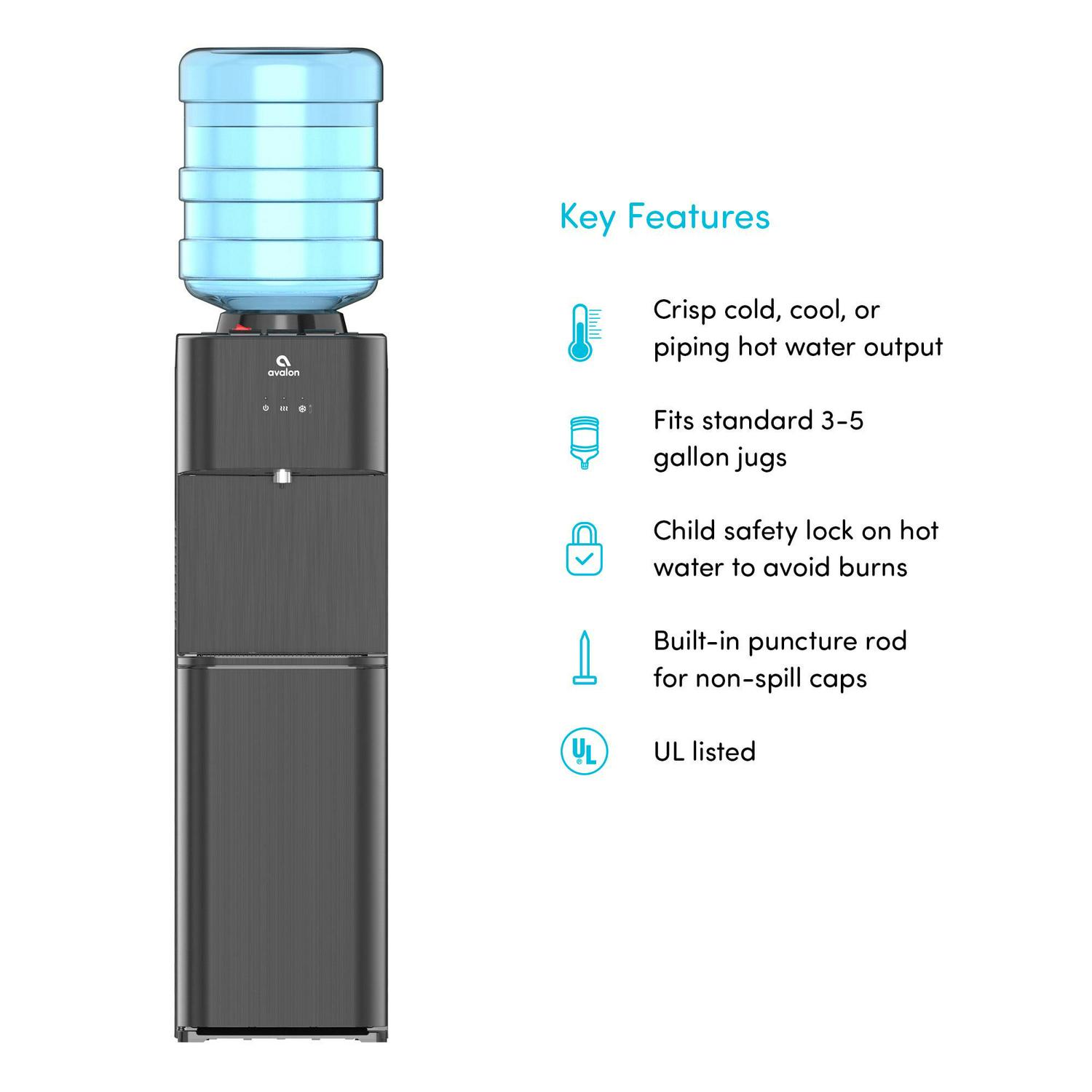 Avalon Top Loading Water Cooler Dispenser – 3 Temperature, Child Safety Lock, Innovative Design, UL Listed- Black Stainless Steel