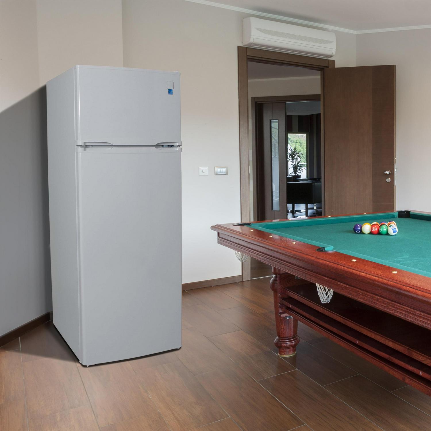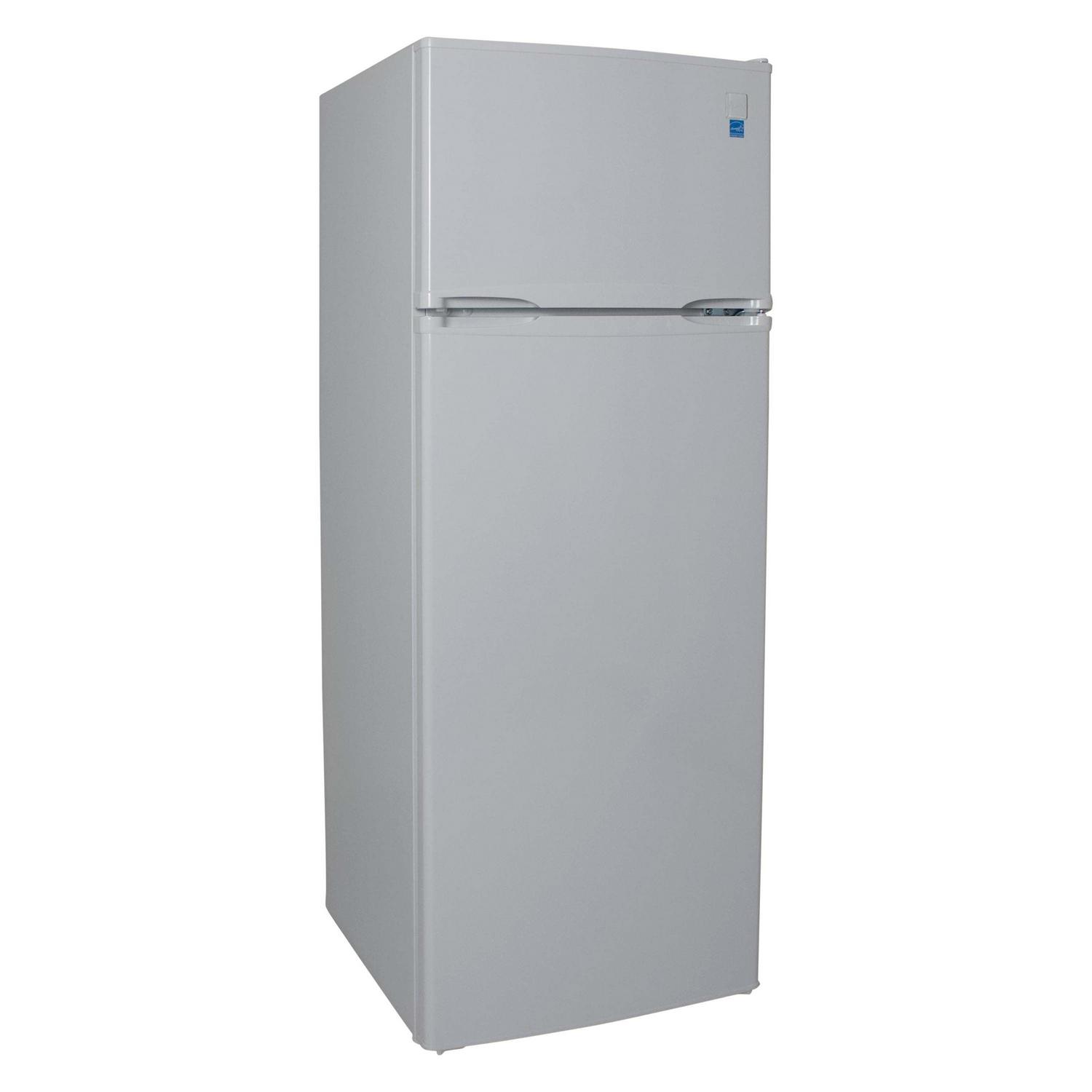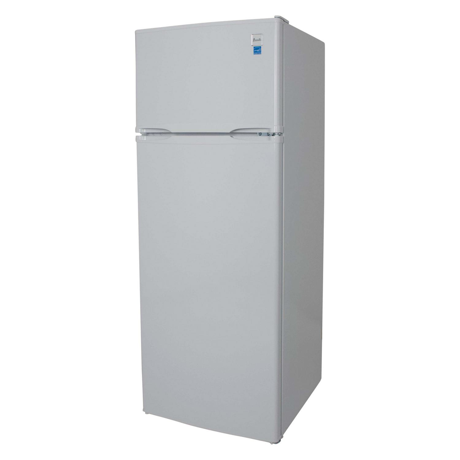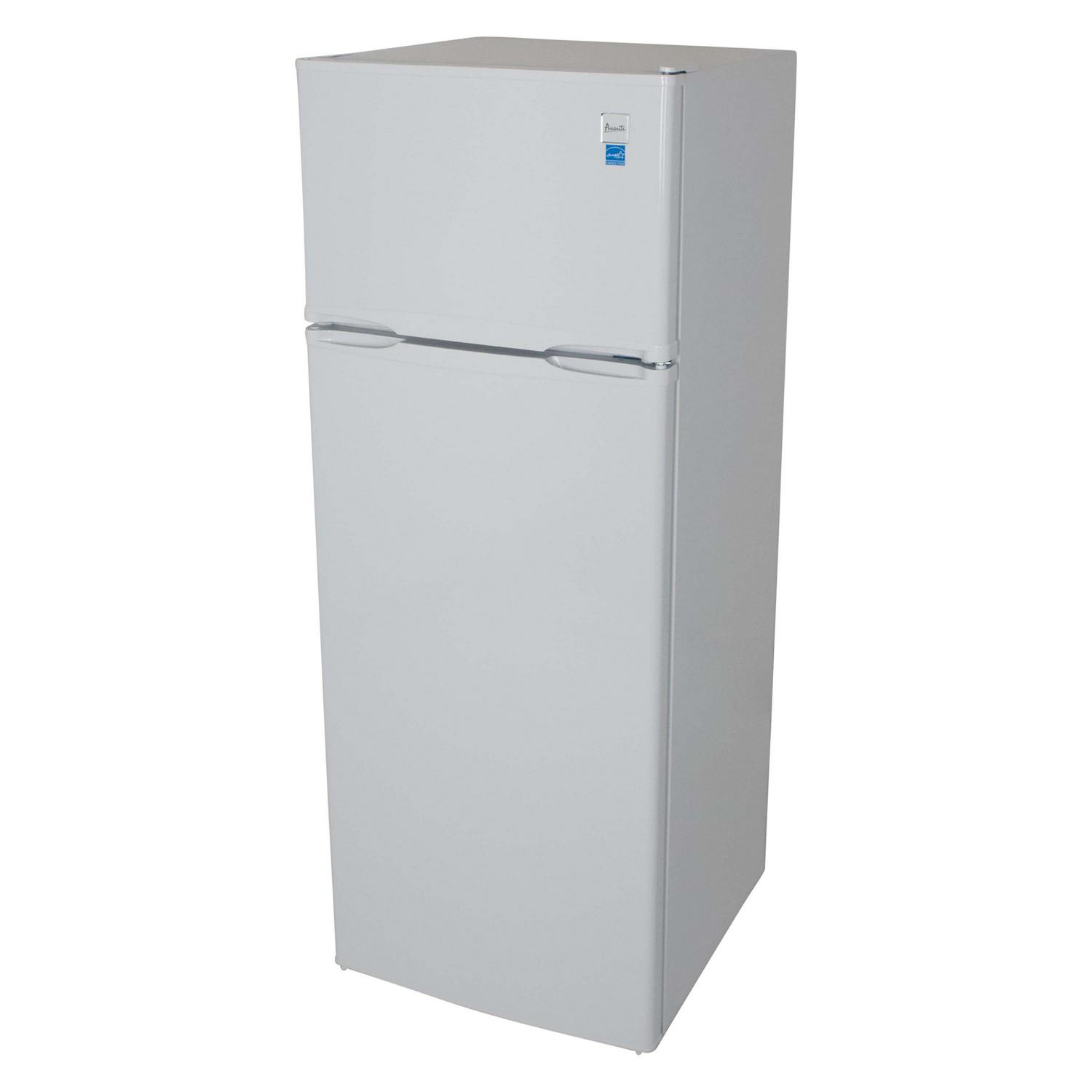 Store your food and beverages in the compact, 7.3 cubic feet, white apartment refrigerator with freezer from Avanti. Ideal for anywhere you need a small refrigerator, it s the perfect space-saving fridge for a studio apartment, game room, tiny home, rental room, condo or vacation home. This apartment-sized fridge features full-width door bins that hold 2-liter and gallon bottles, adjustable and removable shelves, and a see-through crisper for storing your fruits and vegetables. The top-mounted freezer includes a wire shelf to keep your frozen foods organized. Select the right settings for your items with the adjustable temperature control. Covered by the Avanti One-Year Limited Warranty.