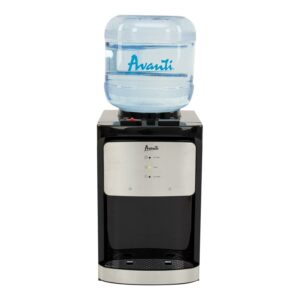 Save time and money with a dual tap, countertop thermoelectric water cooler from Avanti. with a sleek stainless steel finish, this is the perfect compact water cooler for the office, kitchen, worksite, warehouse, gym, or anywhere you want to add access to water. Enjoy instant access to a refreshing glass of cold drinking water or easily prepare your favorite hot beverage, soup, or oatmeal from the dual faucet dispenser. This top-loading water dispenser accommodates 3 or 5-gallon water bottles, helping reduce waste from single-serve bottles.
