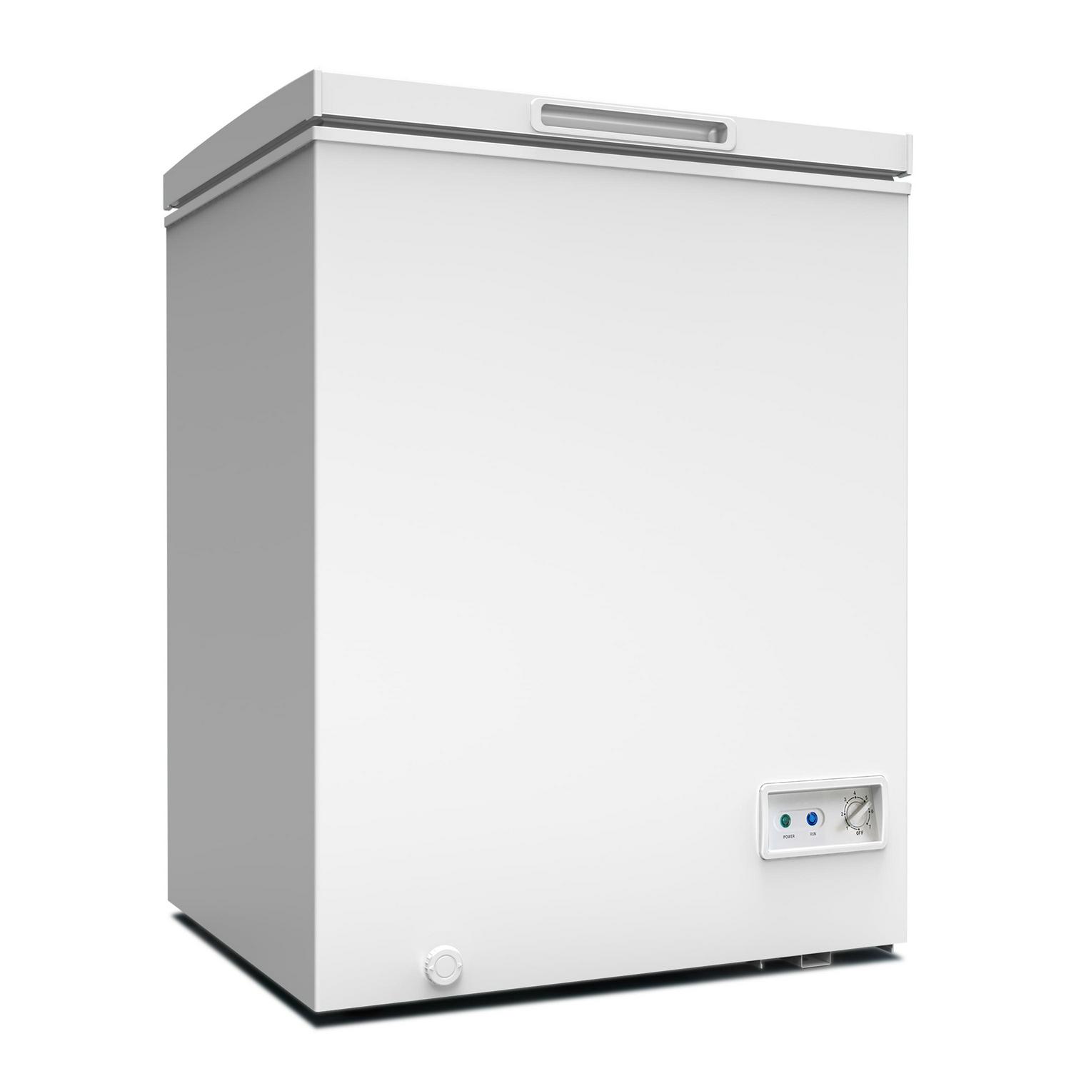 Stock up and store more of your favorite frozen foods while saving time and money with the 7.0 cubic feet white deep freezer from Avanti. The garage ready chest freezer can handle hot or cold temperatures while maintaining an optimal temperature inside. The lift-up lid features an integrated handle for easy access and a streamlined look. This model features a convenient, removable storage basket so you can organize and easily find your frozen foods. The power indicator light lets you know at a glance that your freezer is keeping your items frozen. The external temperature control lets you adjust the temperature without opening the lid. Manual defrost keeps your frozen food fresher and maintains a more consistent freezing temperature, while the defrost water drain conveniently removes water during defrosting. Covered by the Avanti One-Year Limited Warranty.
